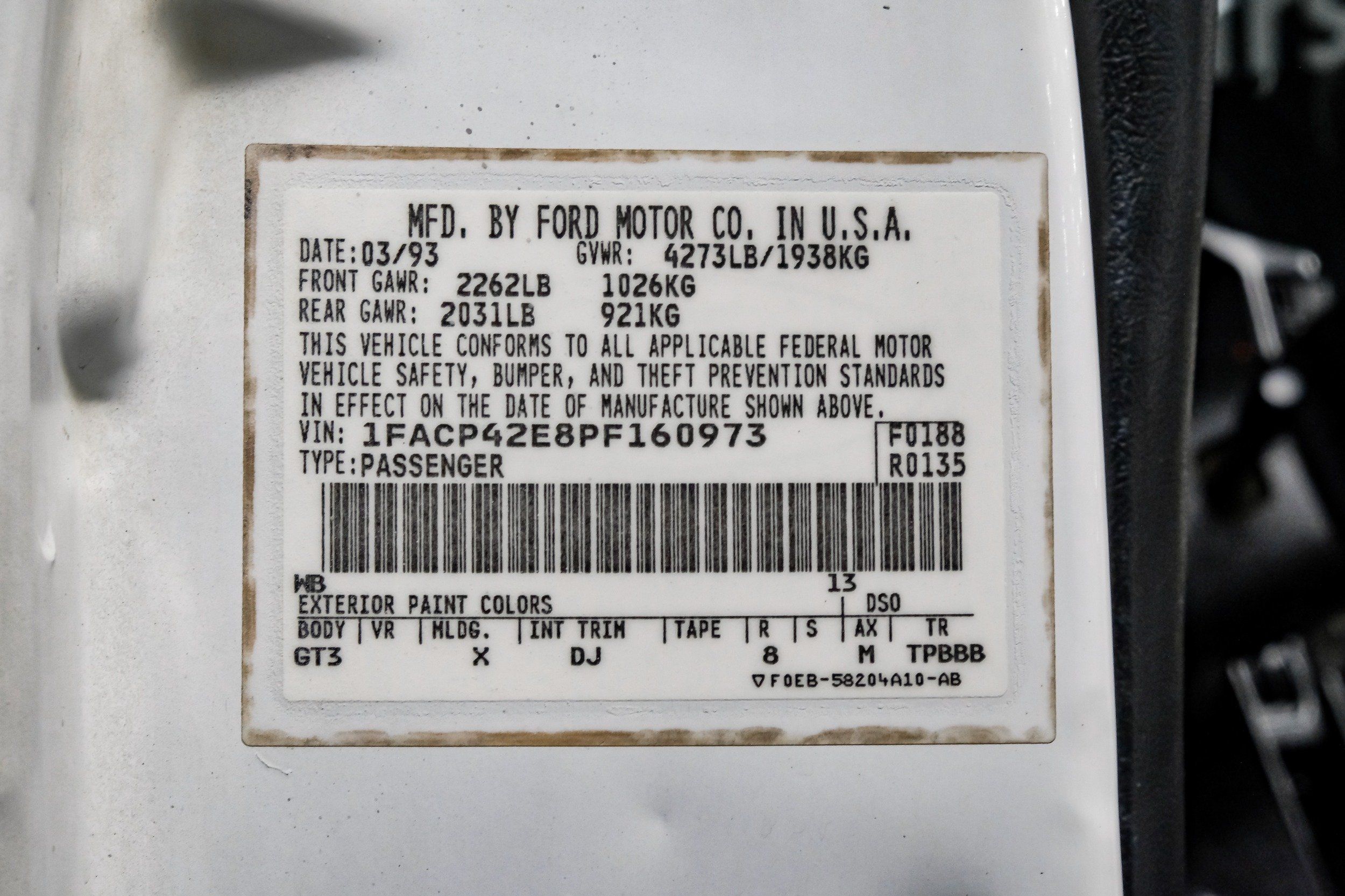 | VIN | 1FACP42E8PF160973 |