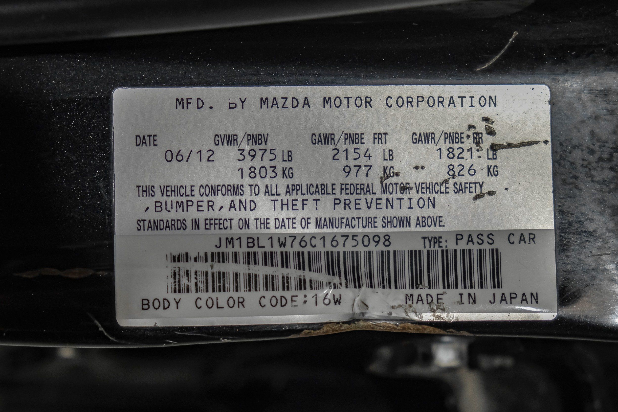 | VIN | JM1BL1W76C1675098 |