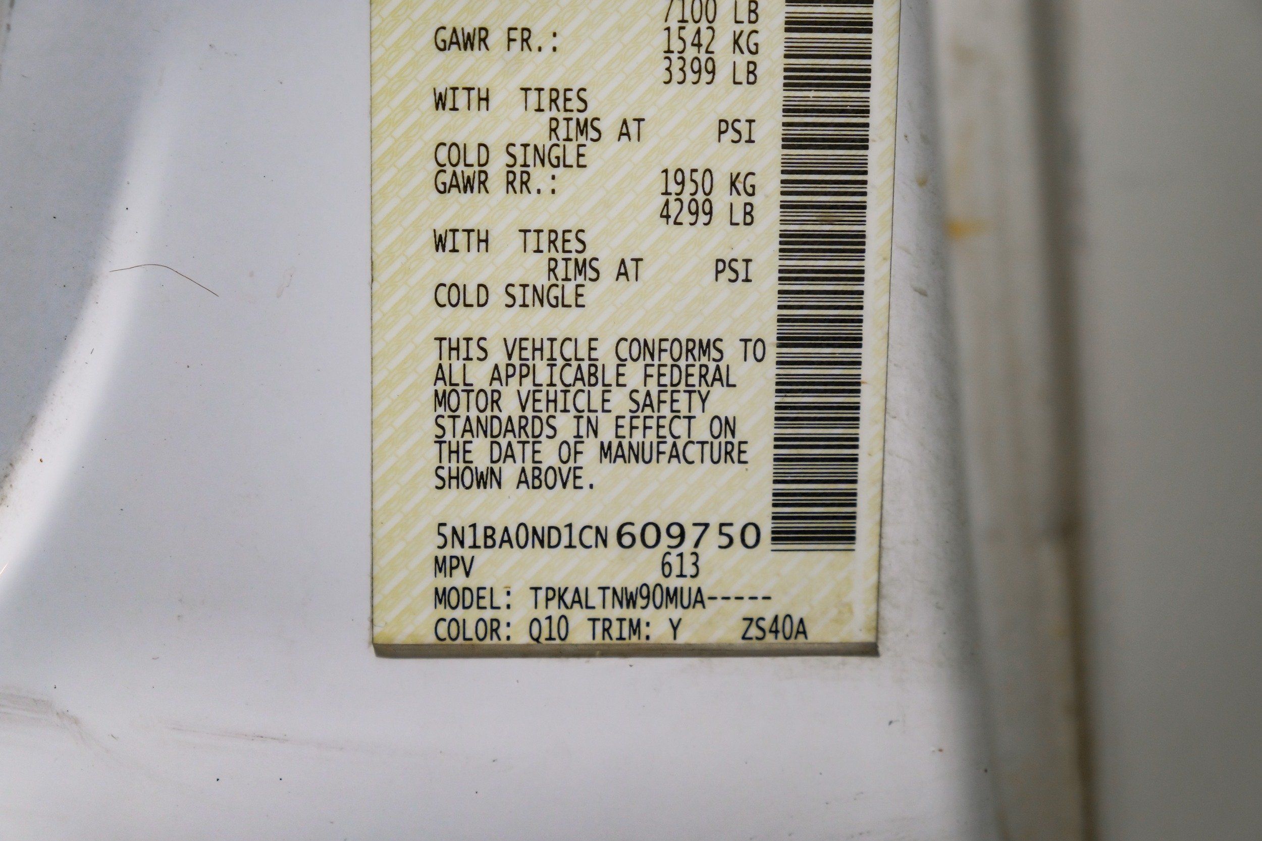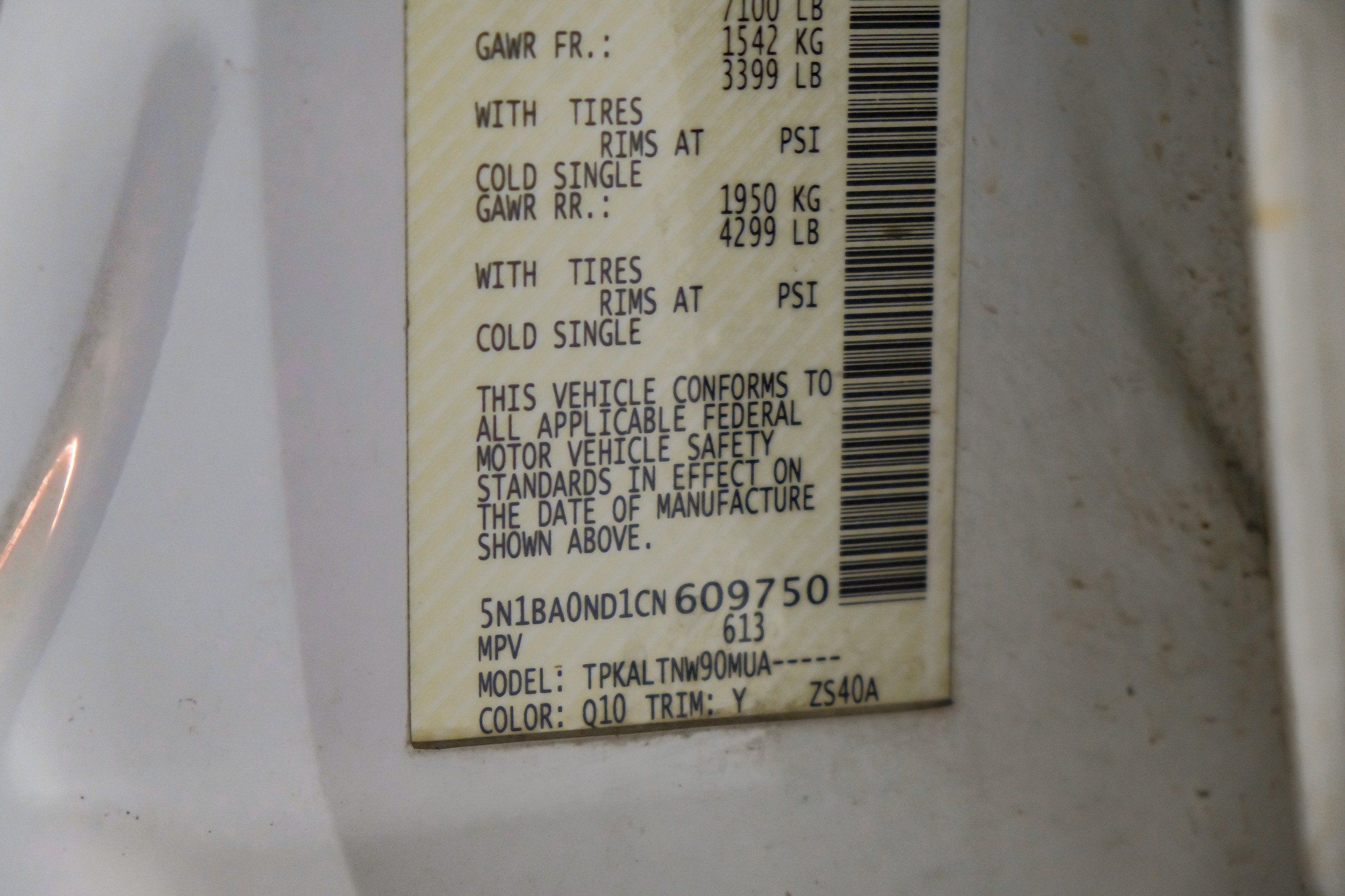 | VIN | 5N1BA0ND1CN609750 |
