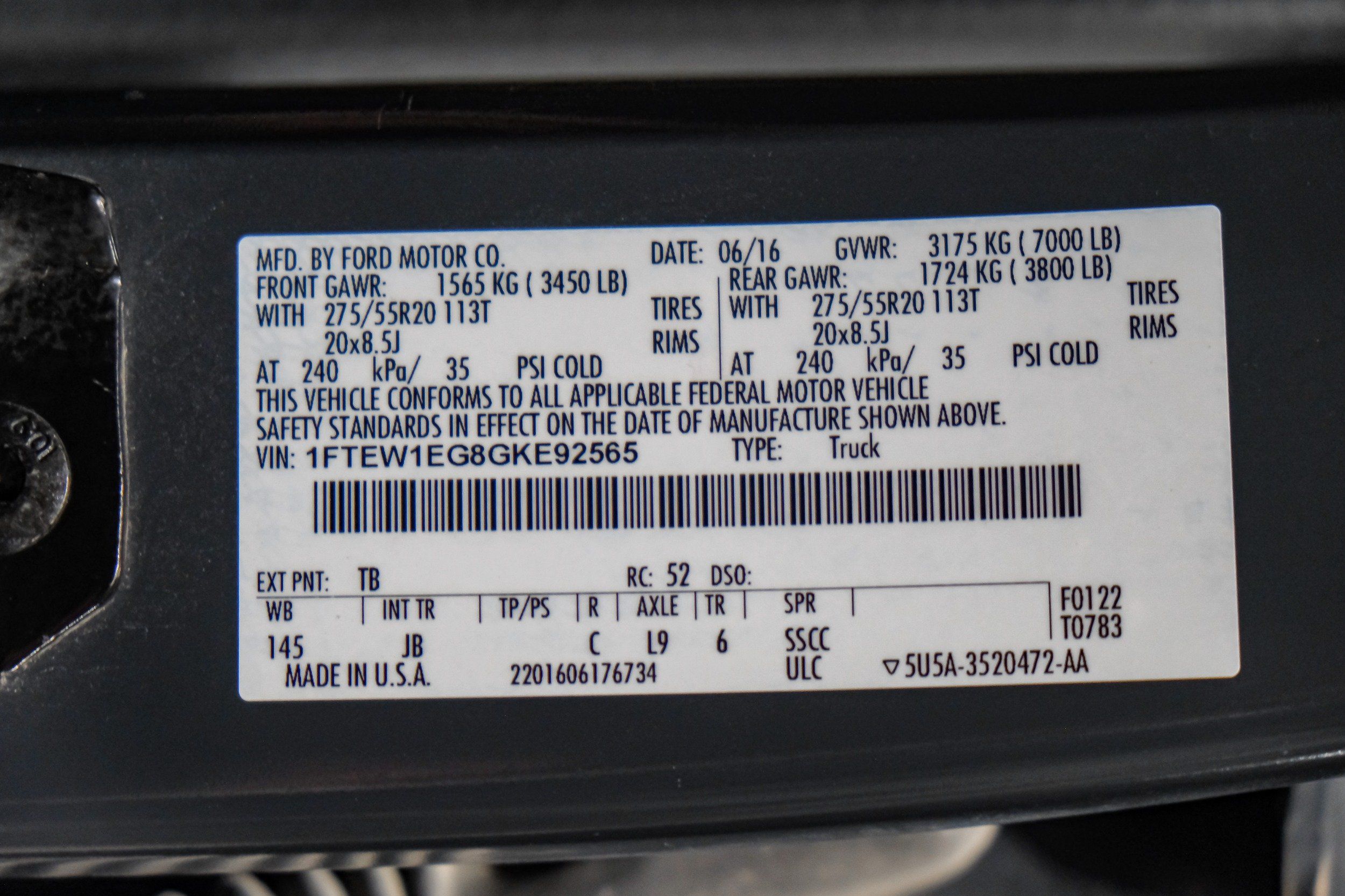 | VIN | 1FTEW1EG8GKE92565 |