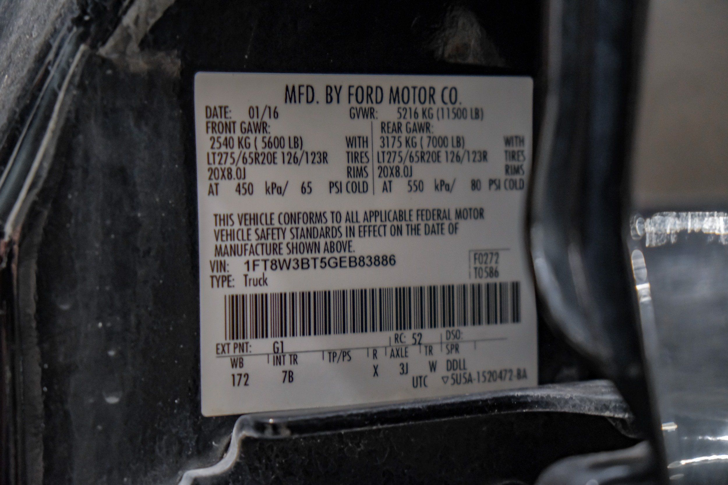| VIN | 1FT8W3BT5GEB83886 |