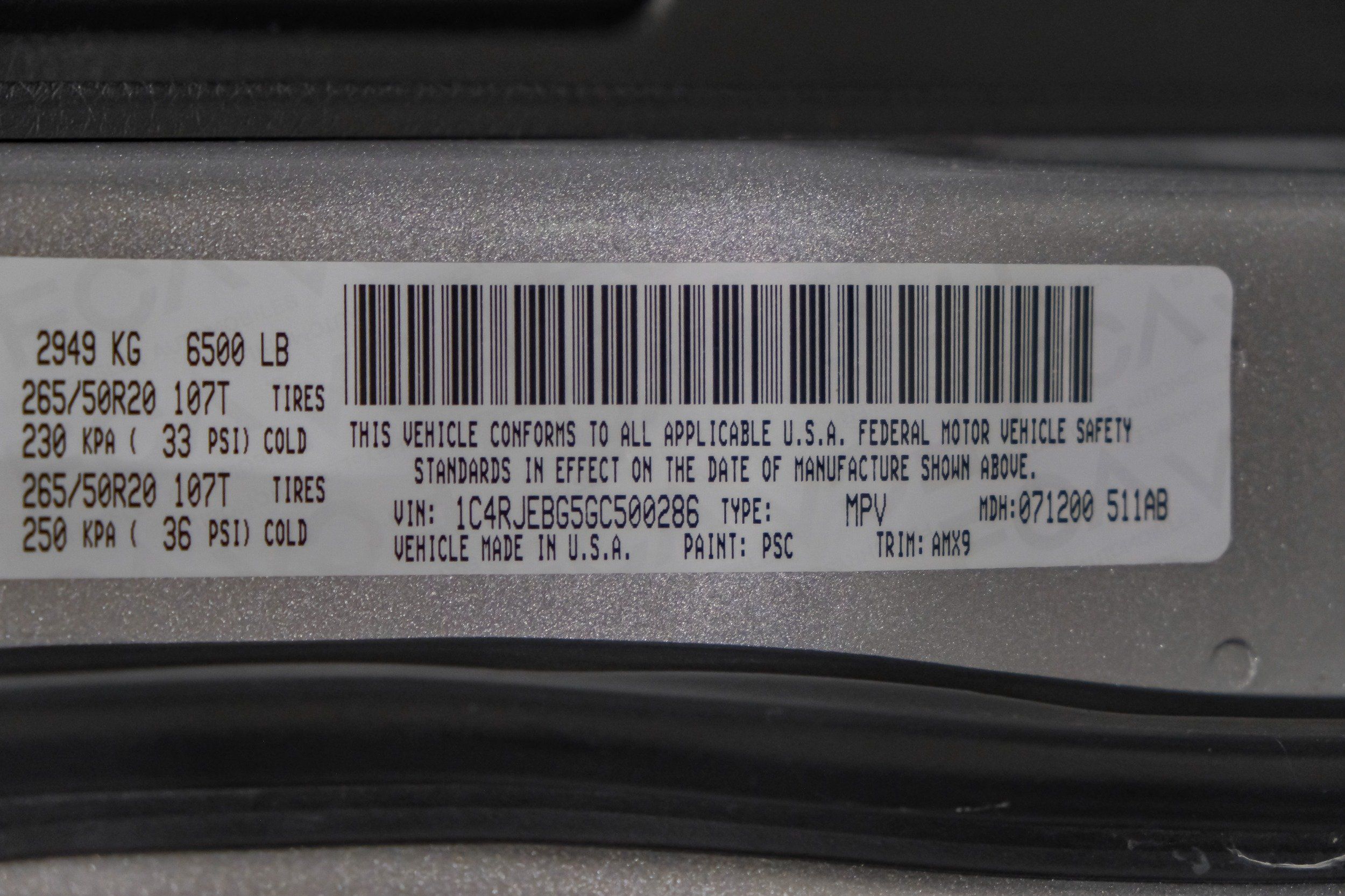 | VIN | 1C4RJEBG5GC500286 |
