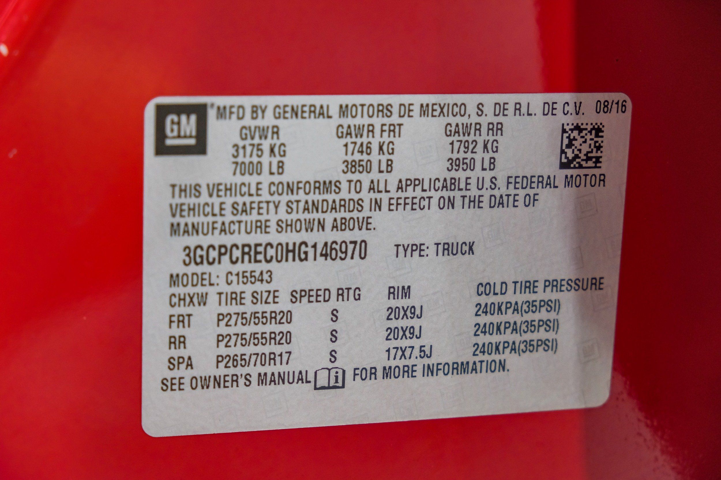 | VIN | 3GCPCREC0HG146970 |