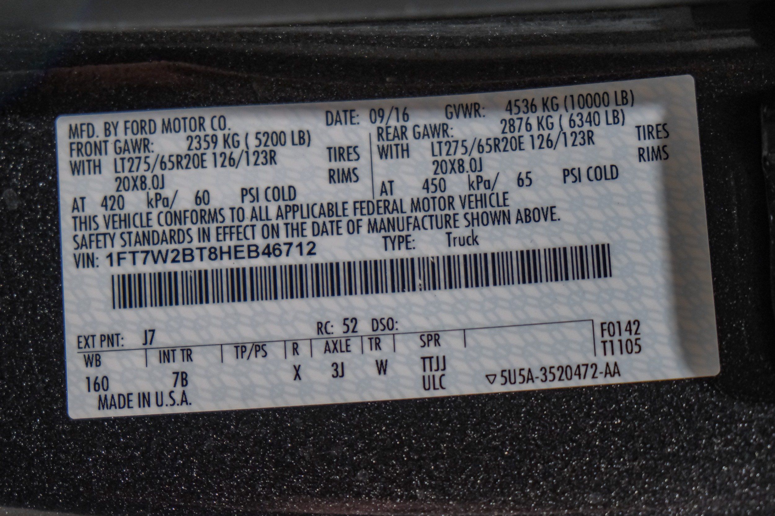| VIN | 1FT7W2BT8HEB46712 |