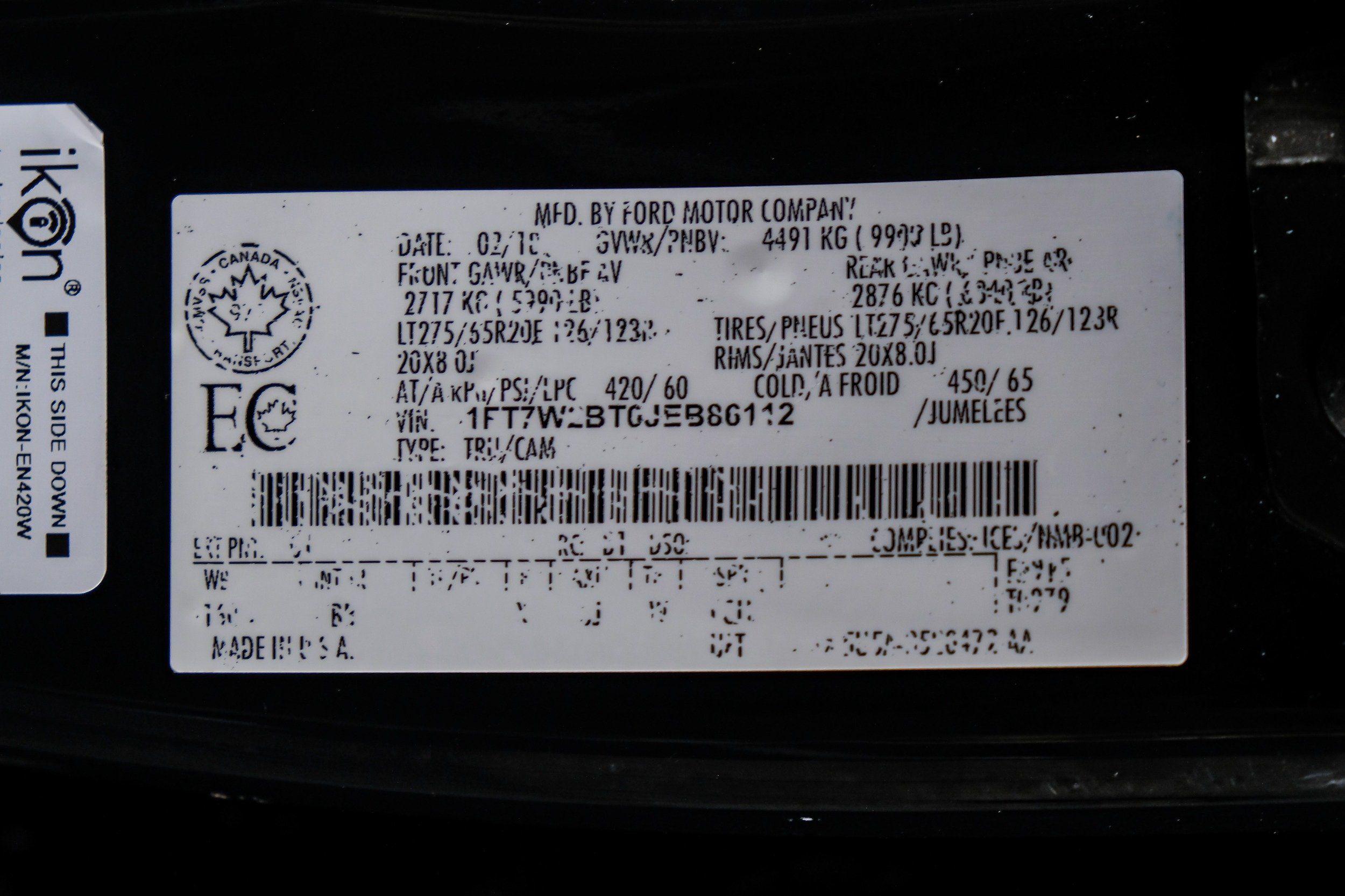 | VIN | 1FT7W2BT0JEB86112 |