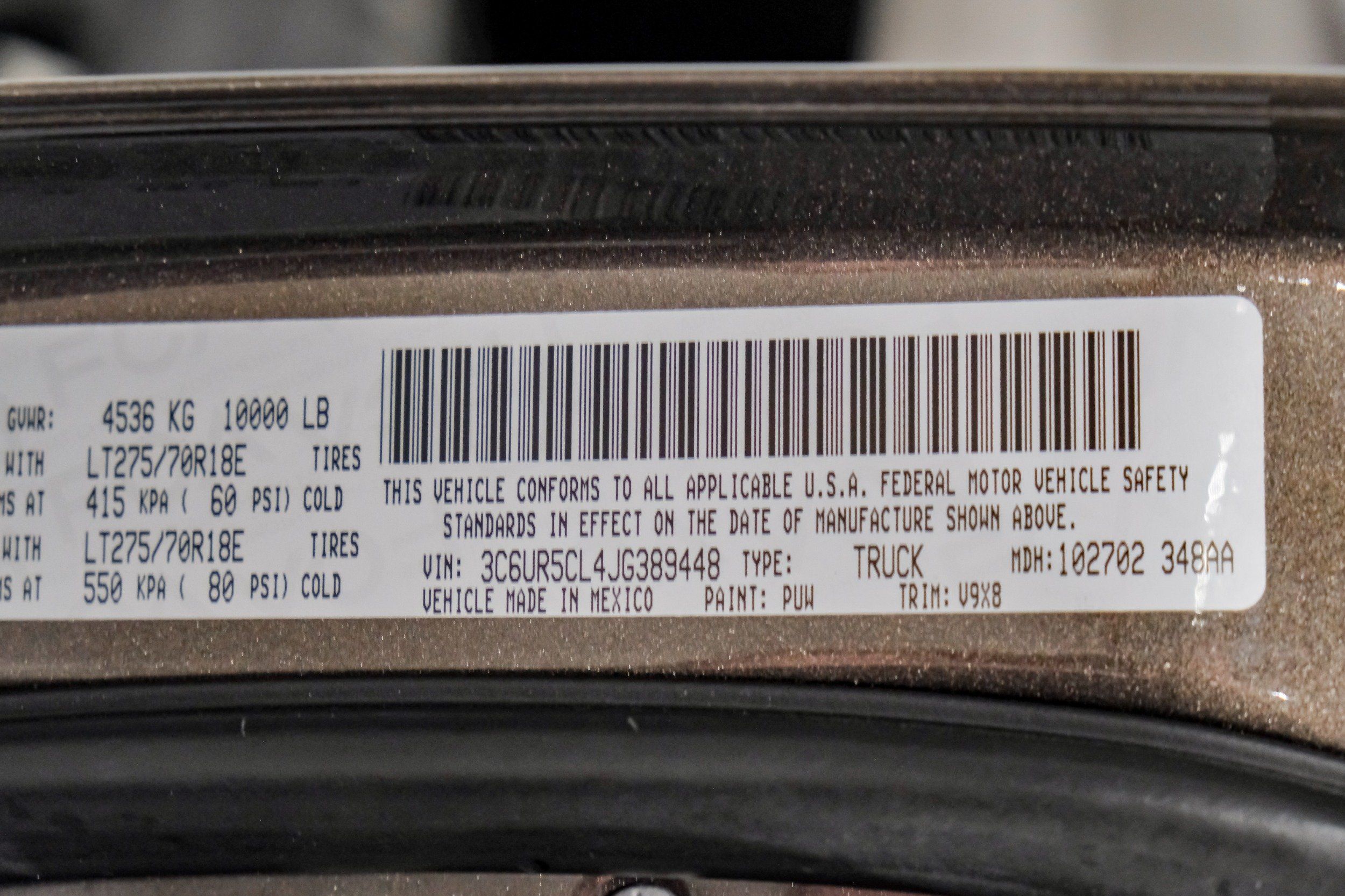 | VIN | 3C6UR5CL4JG389448 |