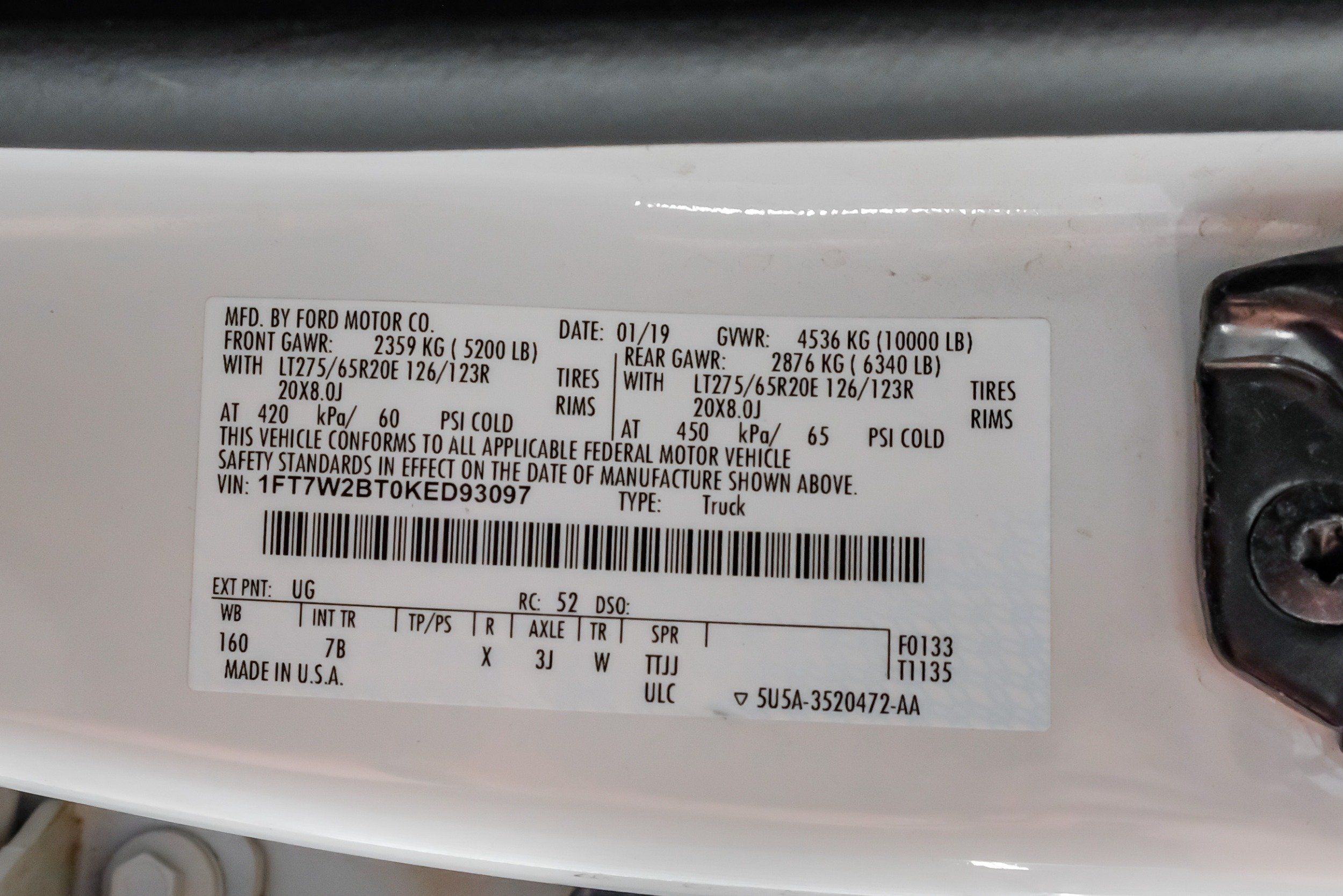 | VIN | 1FT7W2BT0KED93097 |