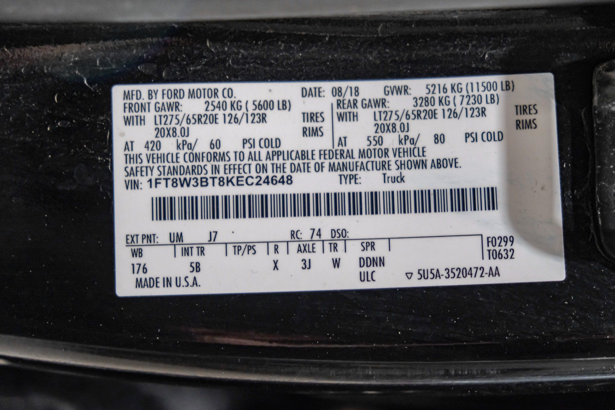 | VIN | 1FT8W3BT8KEC24648 |