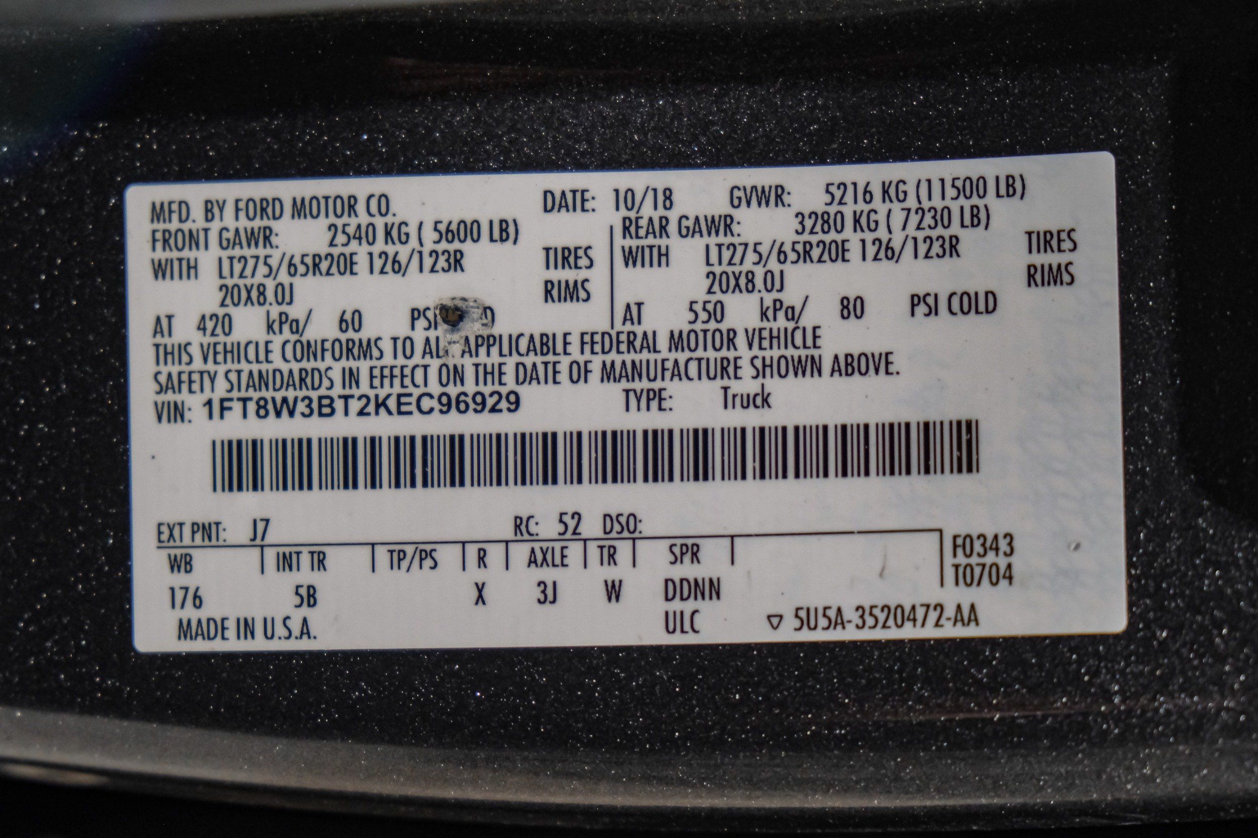 | VIN | 1FT8W3BT2KEC96929 |