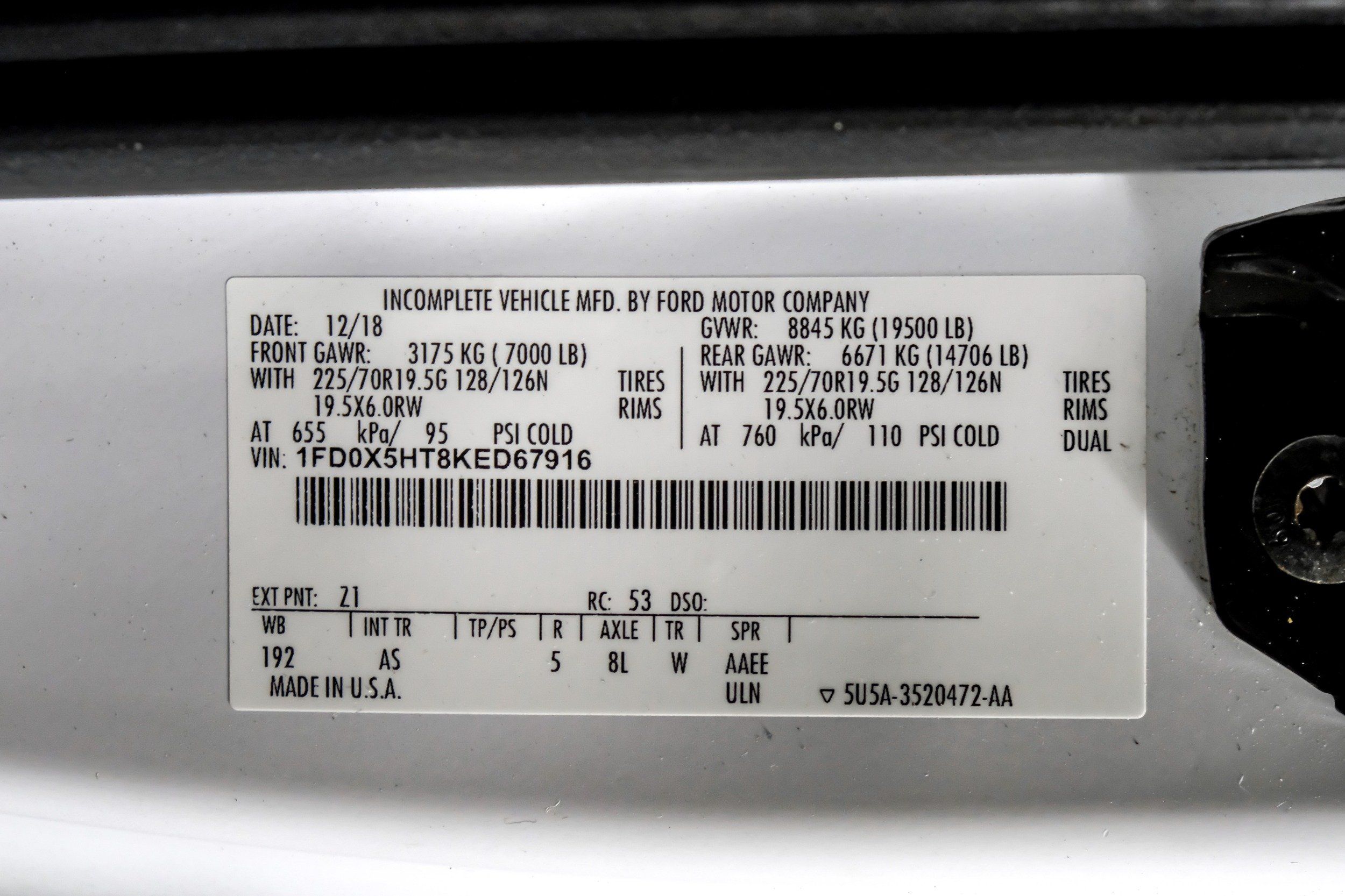 | VIN | 1FD0X5HT8KED67916 |
