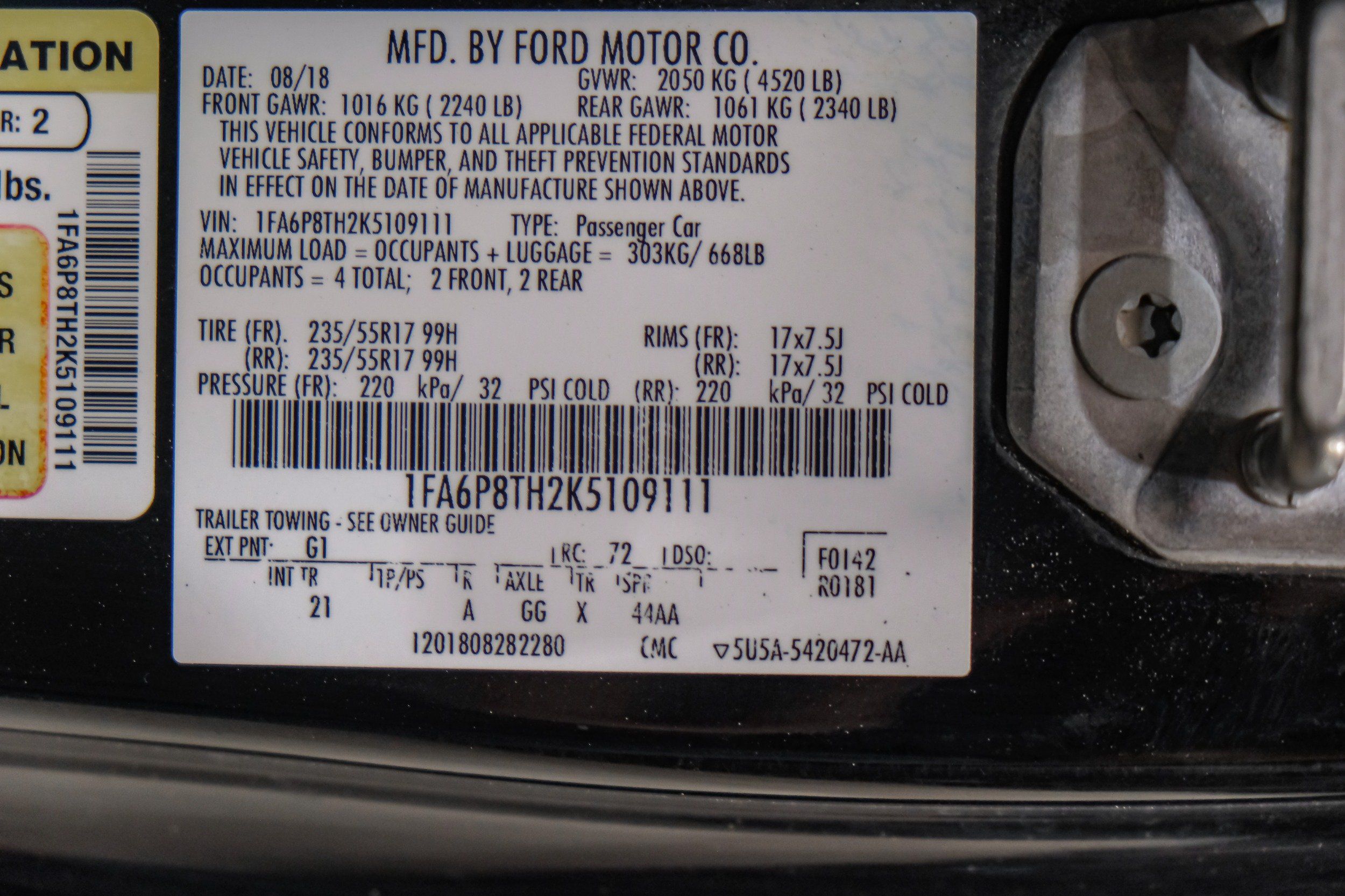 | VIN | 1FA6P8TH2K5109111 |