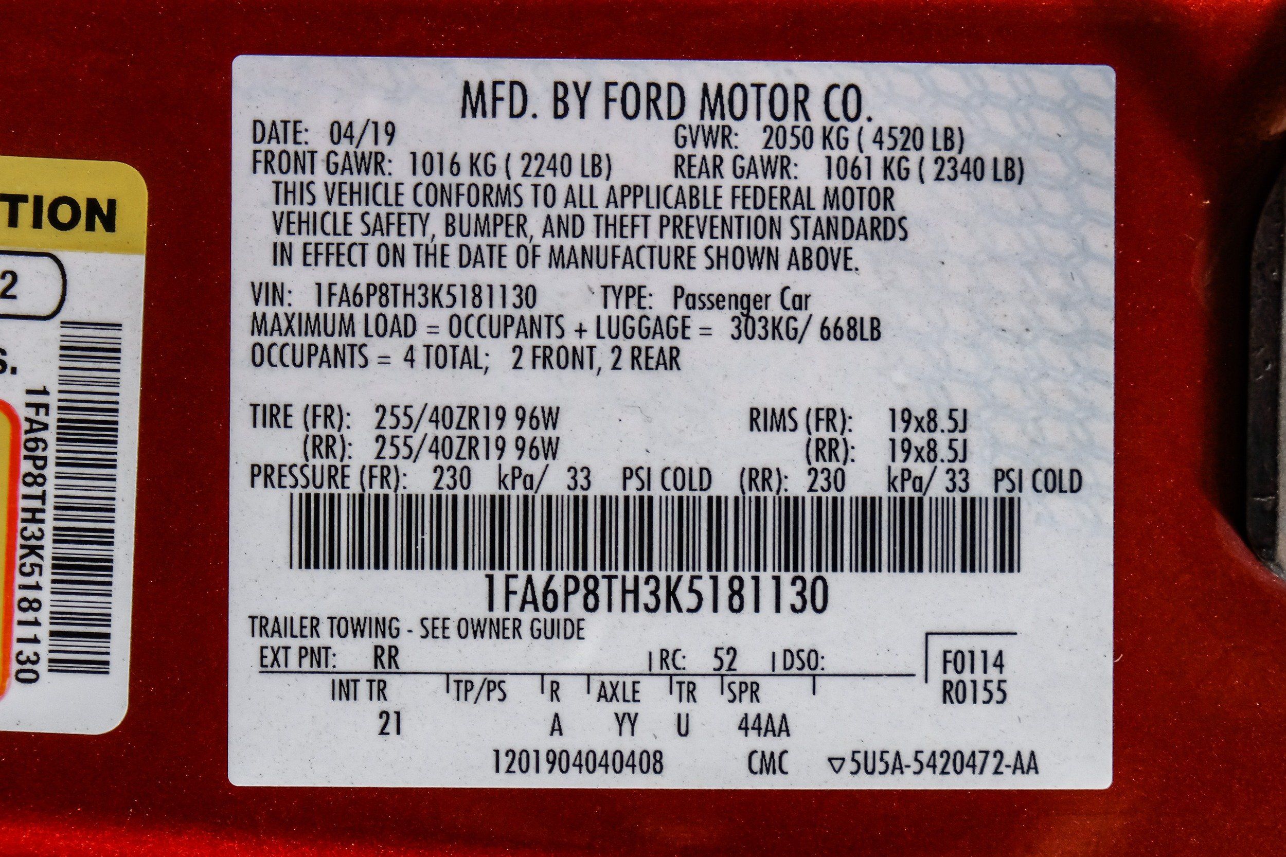 | VIN | 1FA6P8TH3K5181130 |