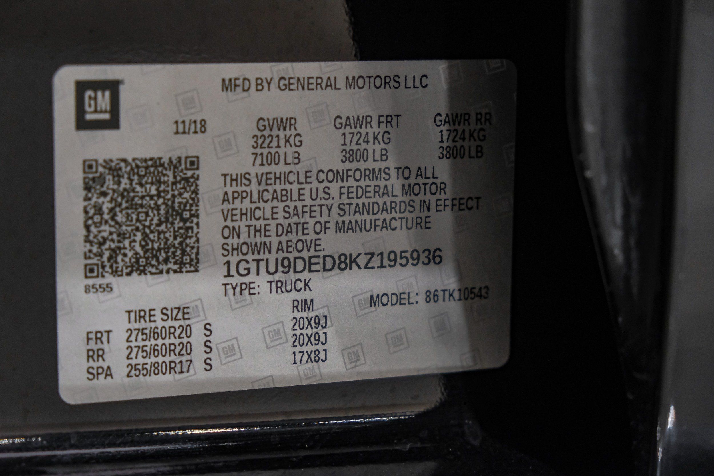 | VIN | 1GTU9DED8KZ195936 |
