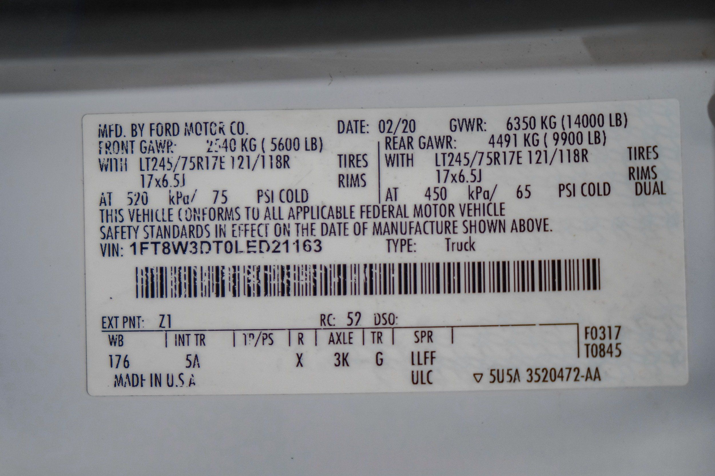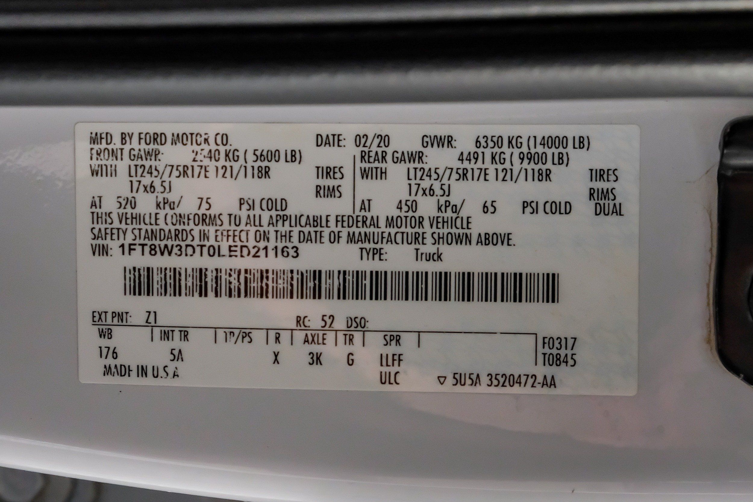 | VIN | 1FT8W3DT0LED21163 |