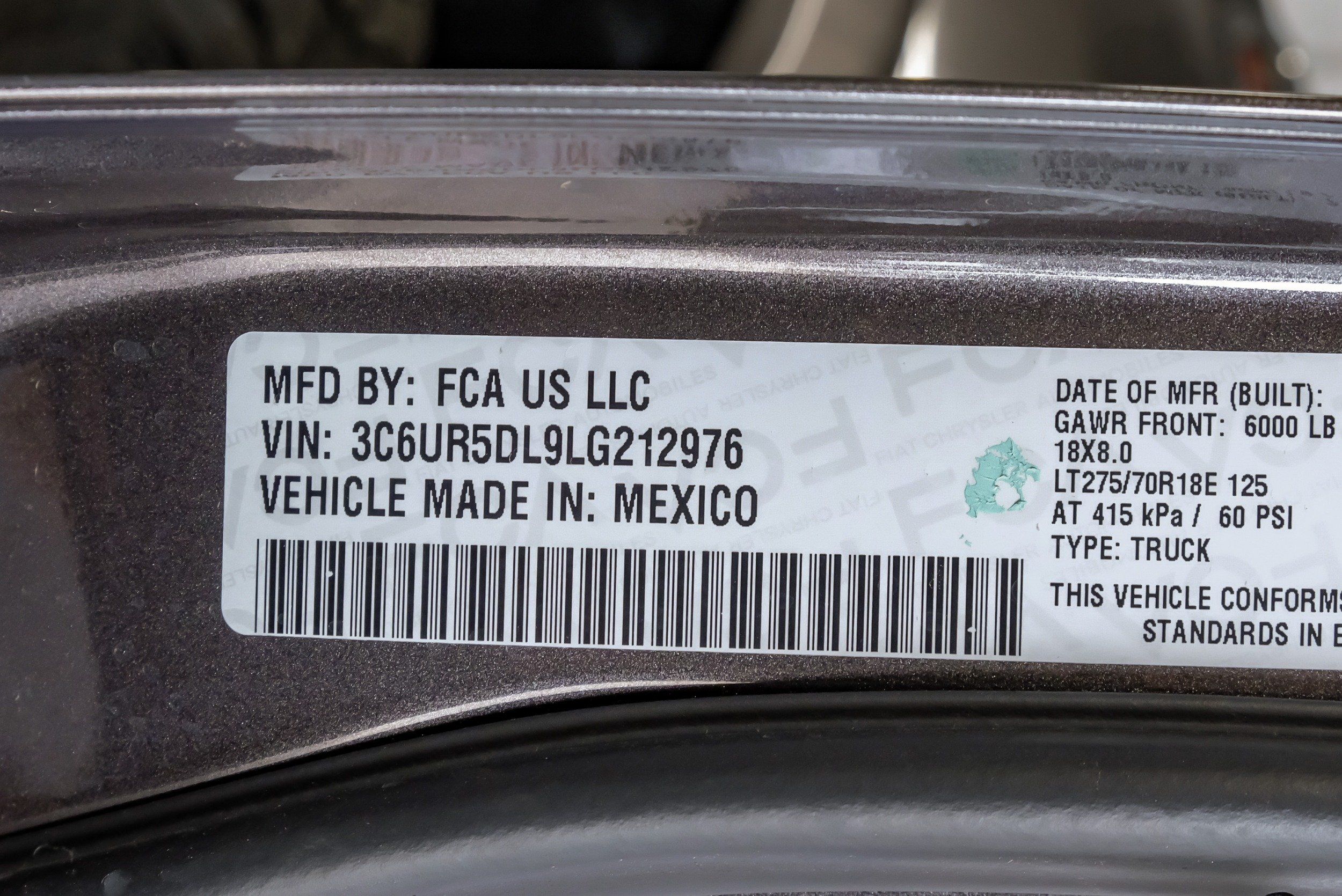 | VIN | 3C6UR5DL9LG212976 |