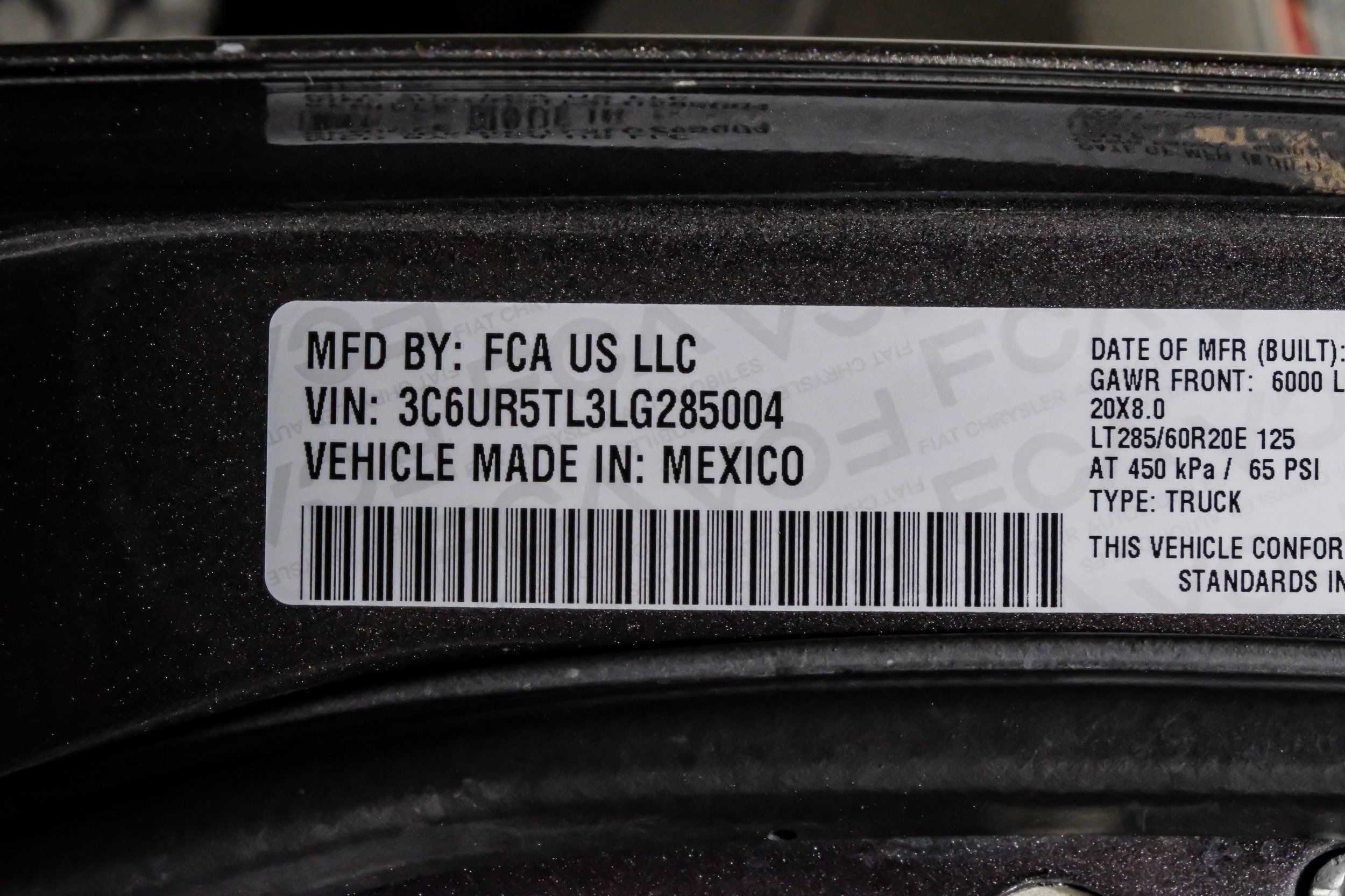 | VIN | 3C6UR5TL3LG285004 |
