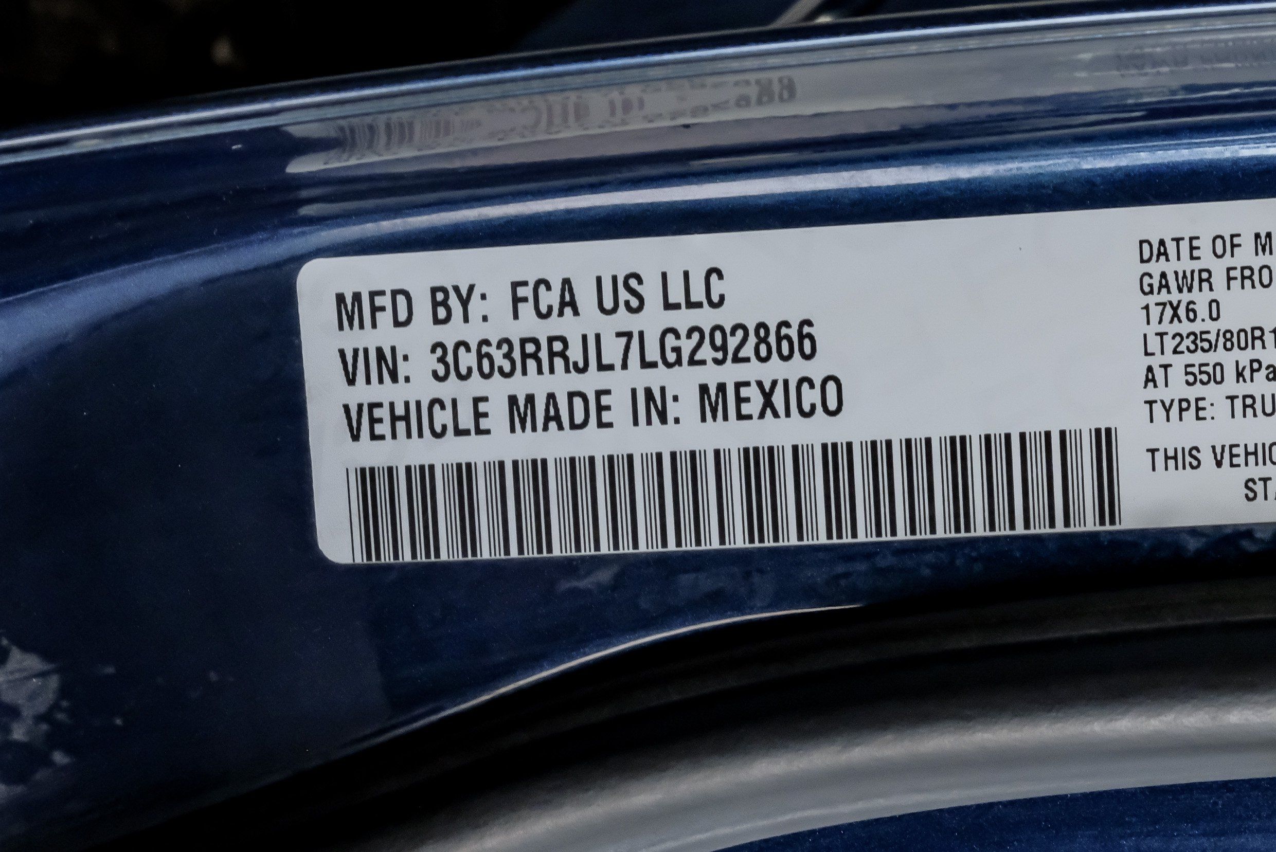VIN 3C63RRJL7LG292866