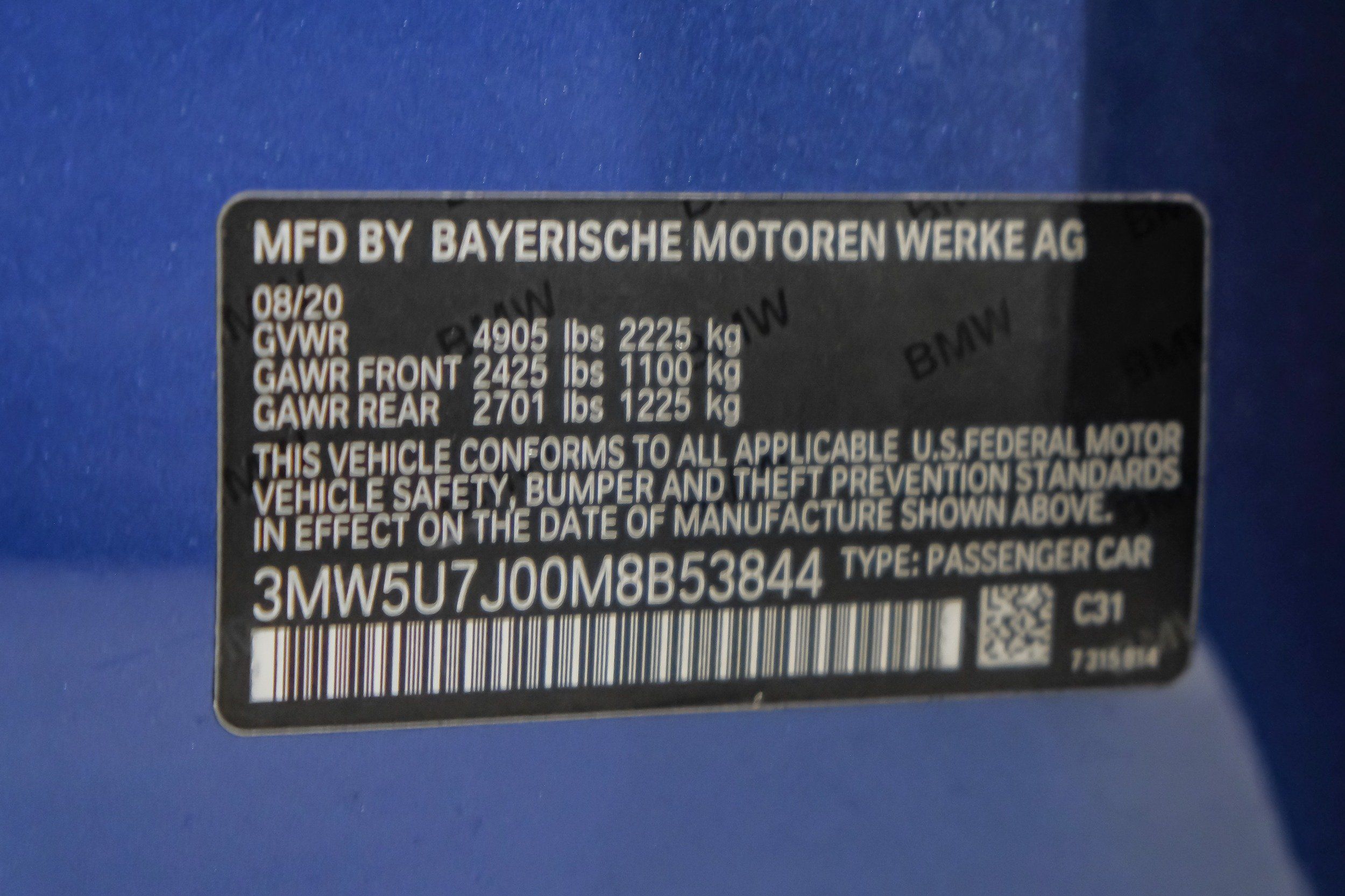 | VIN | 3MW5U7J00M8B53844 |