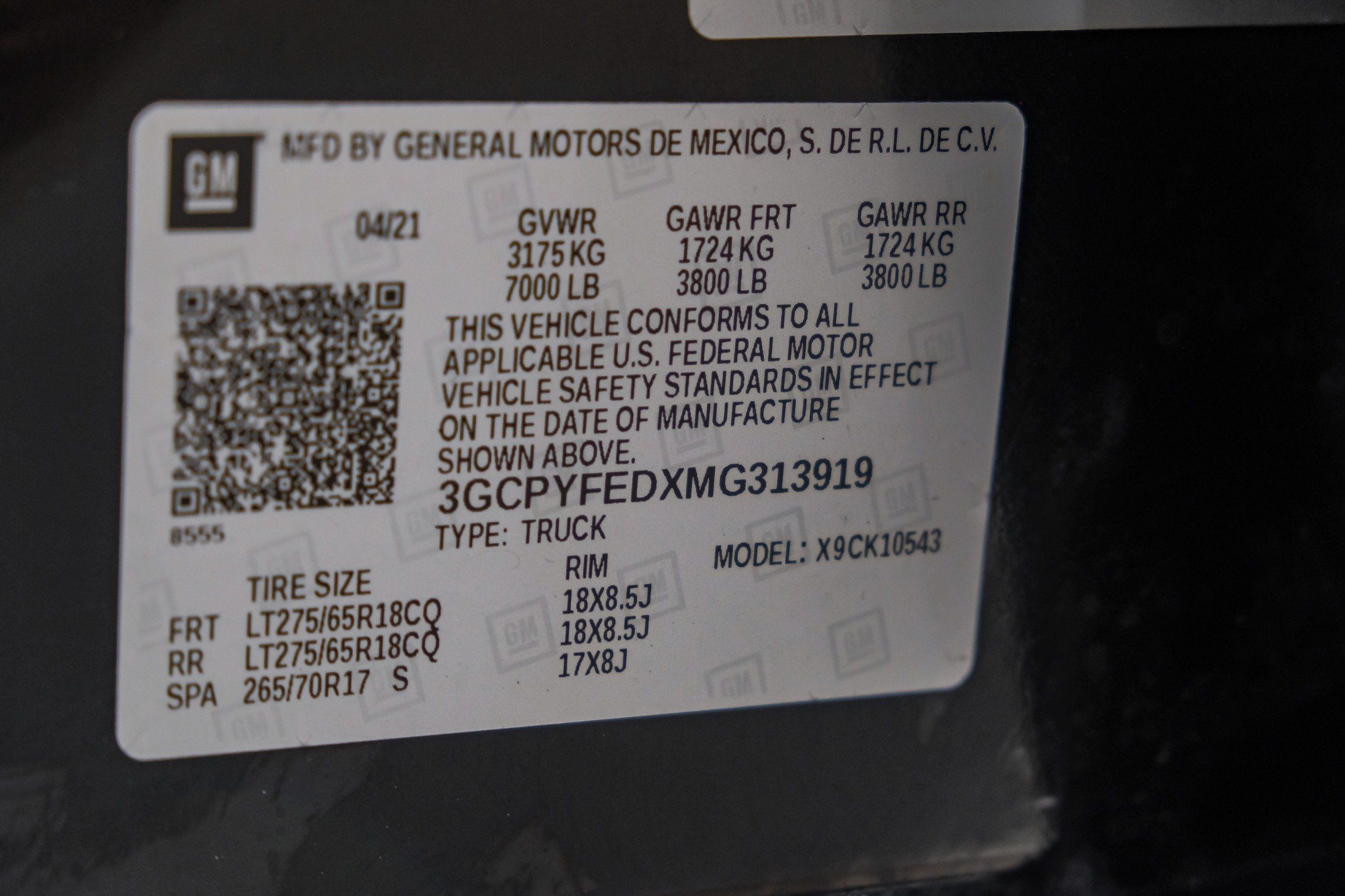 | VIN | 3GCPYFEDXMG313919 |