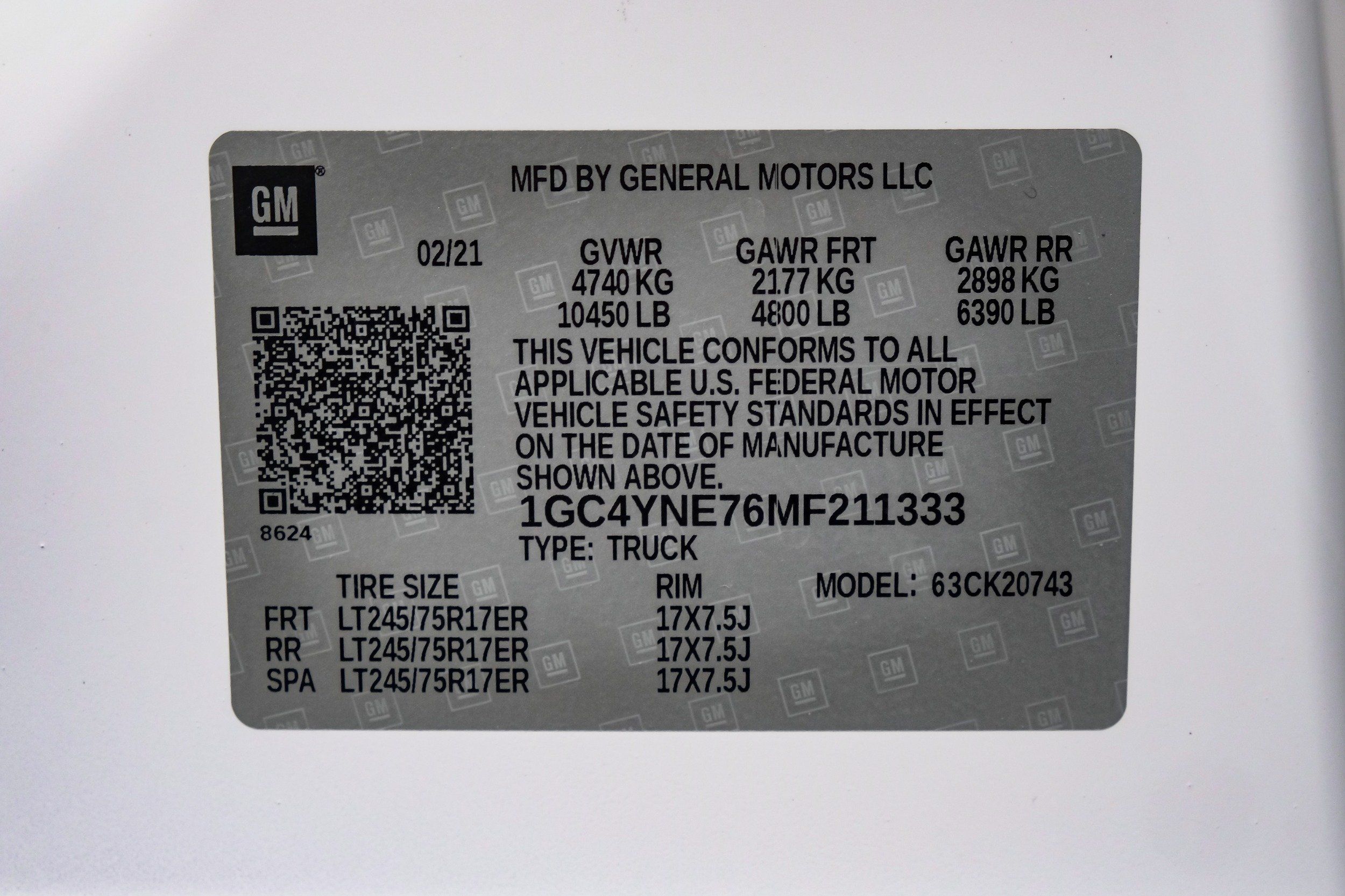 | VIN | 1GC4YNE76MF211333 |