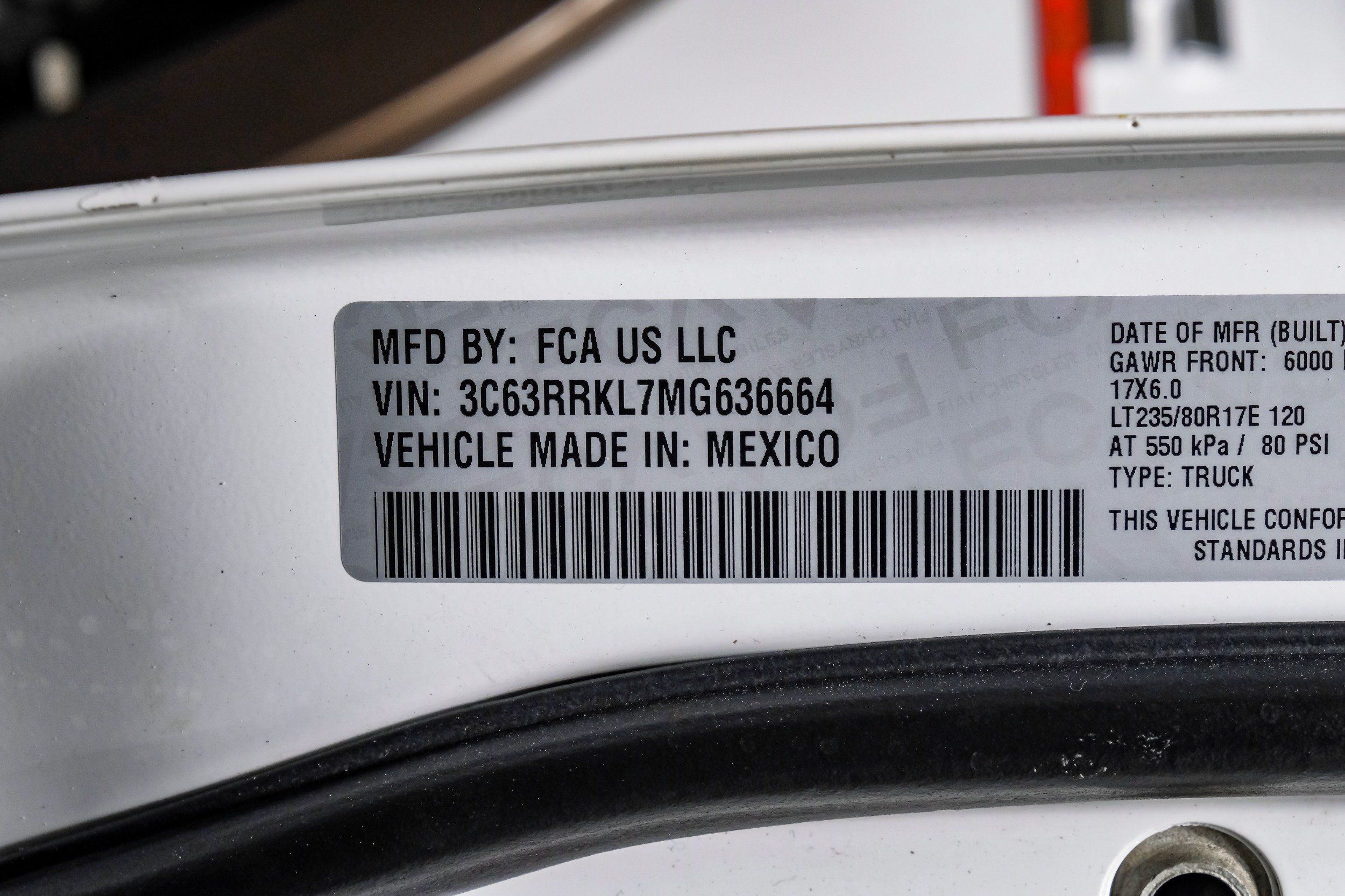 | VIN | 3C63RRKL7MG636664 |