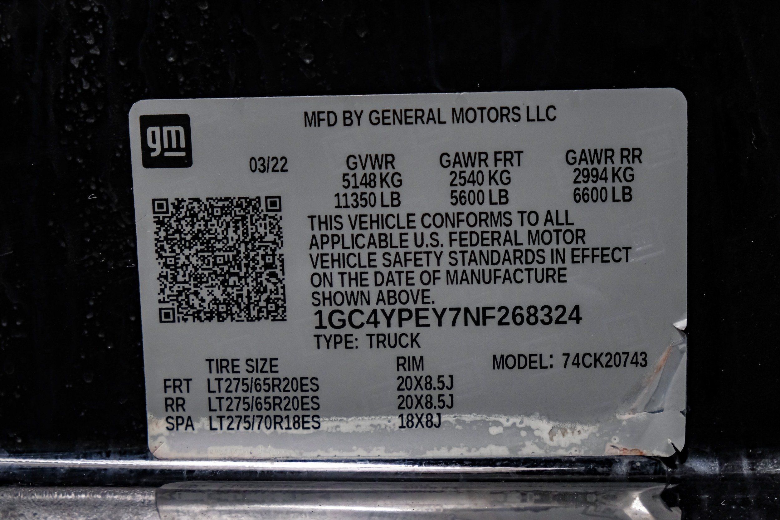 | VIN | 1GC4YPEY7NF268324 |