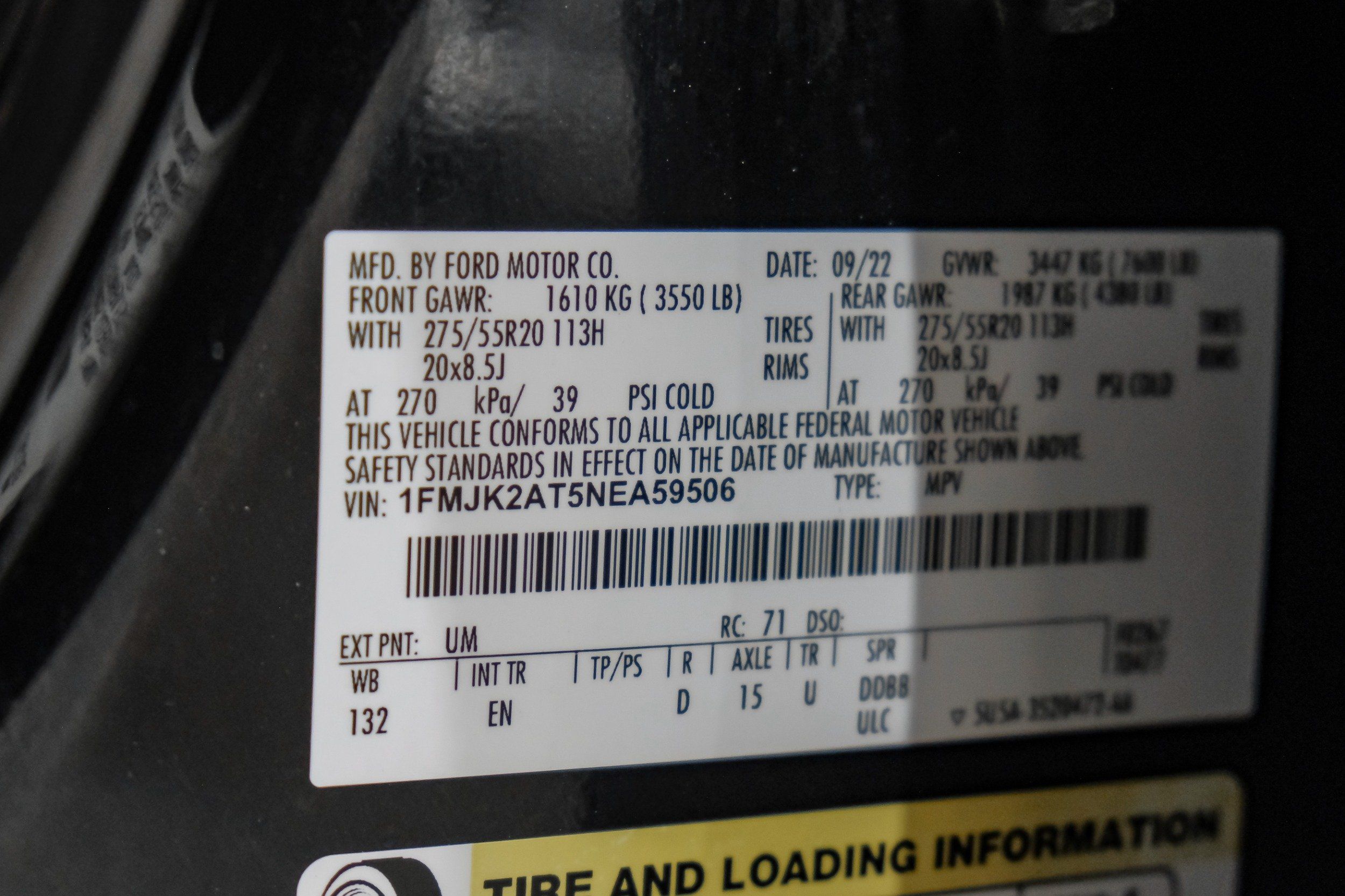 | VIN | 1FMJK2AT5NEA59506 |