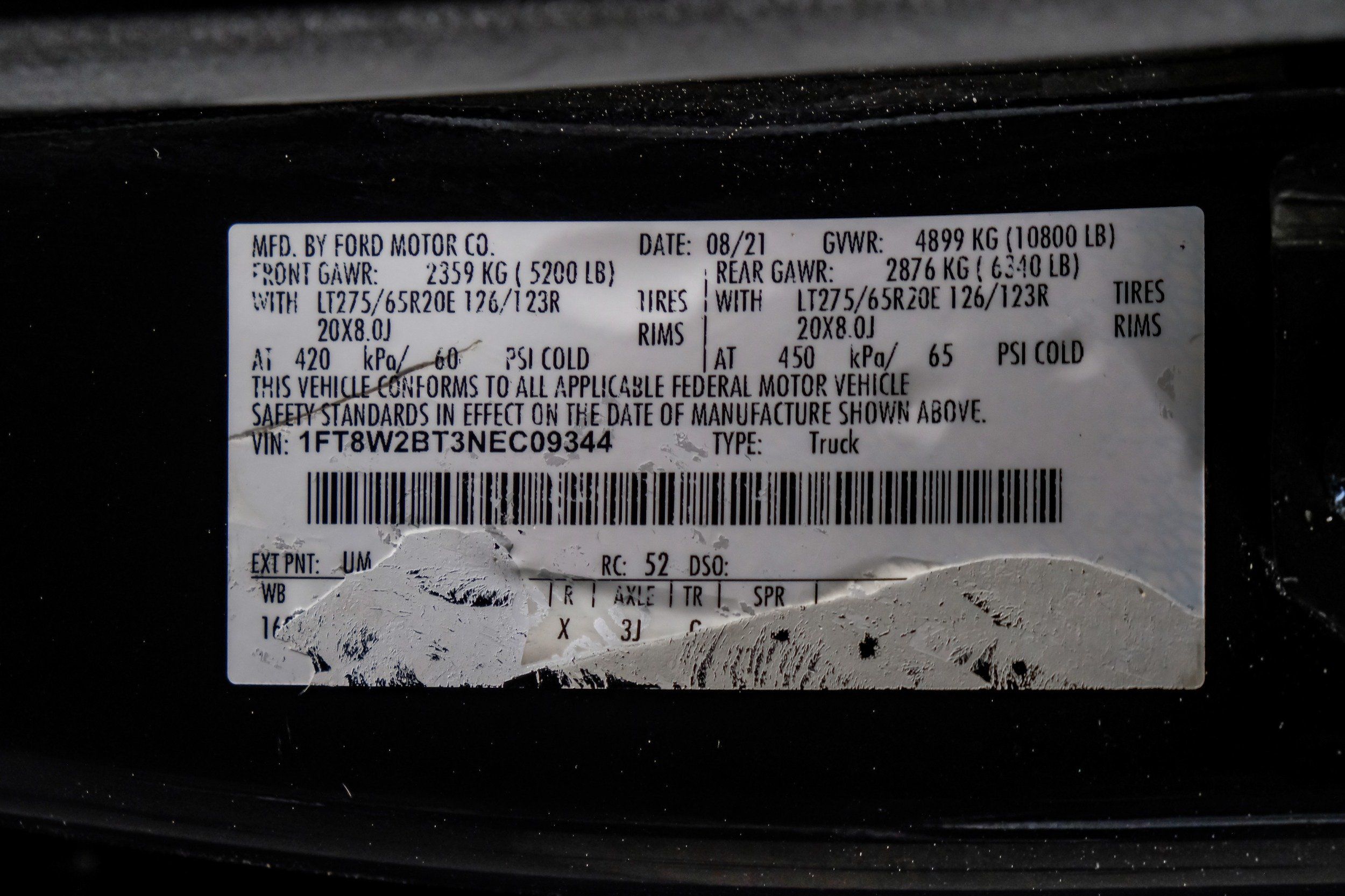 | VIN | 1FT8W2BT3NEC09344 |