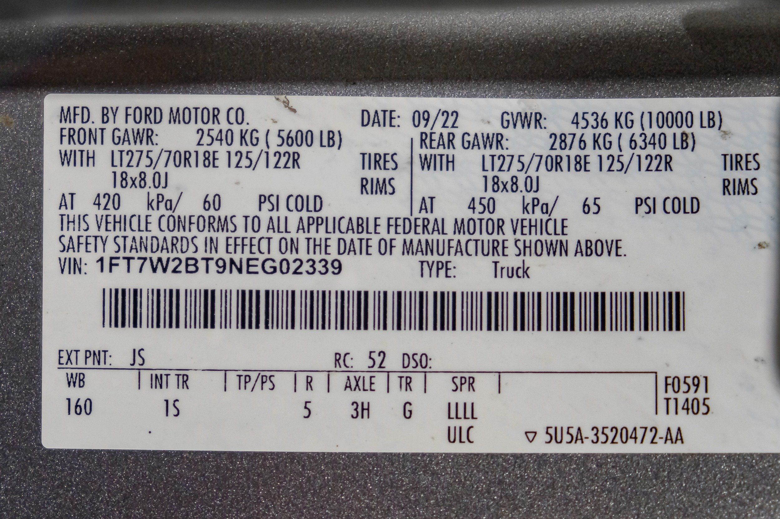 | VIN | 1FT7W2BT9NEG02339 |