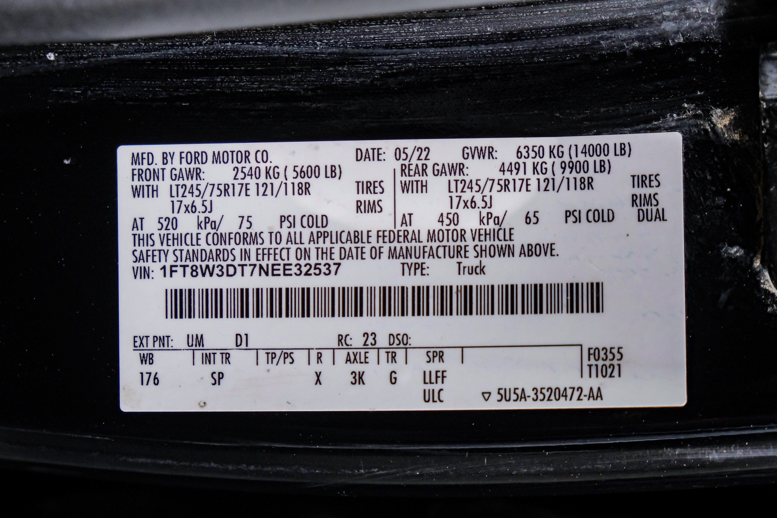 | VIN | 1FT8W3DT7NEE32537 |