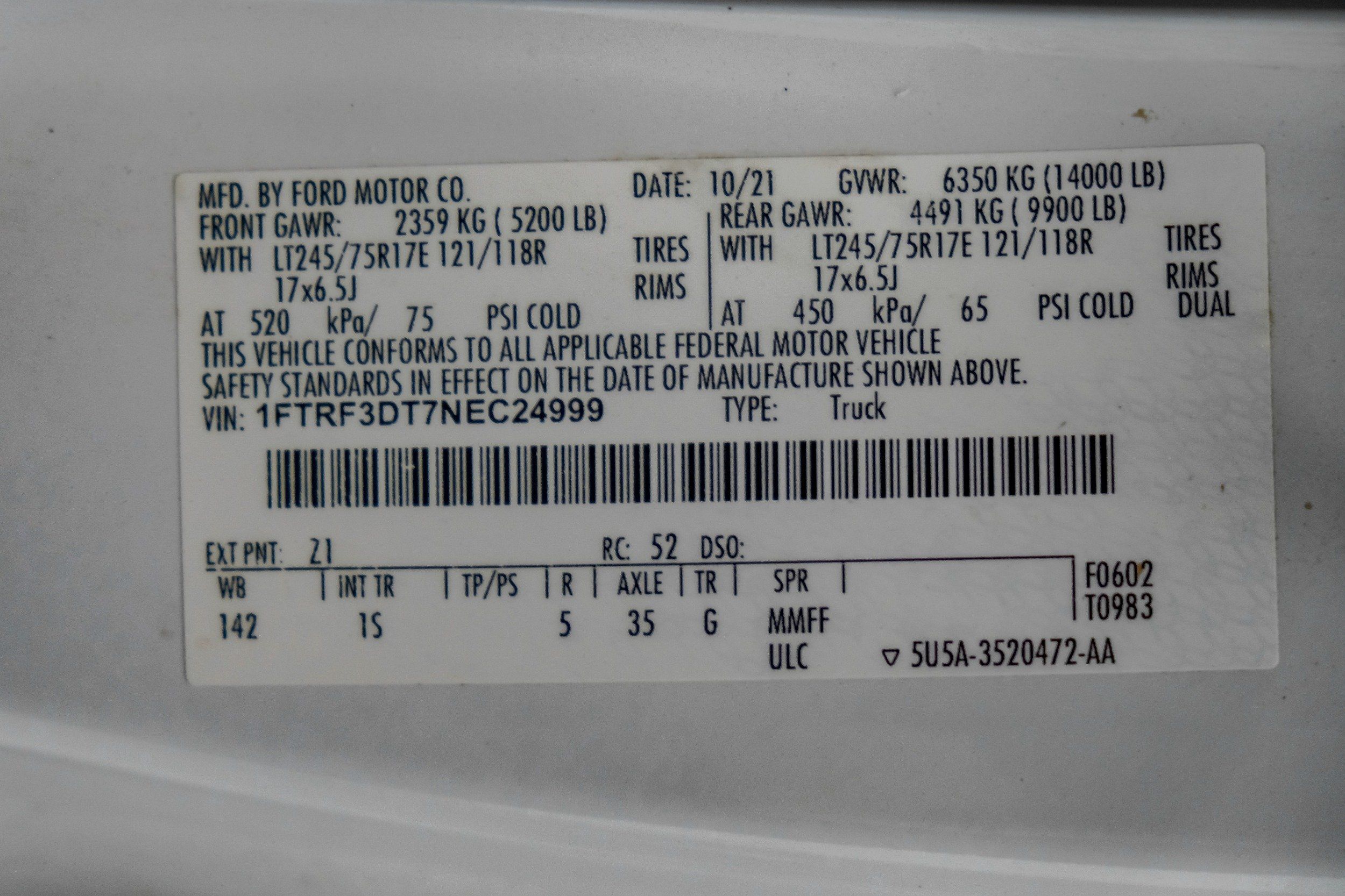 | VIN | 1FTRF3DT7NEC24999 |