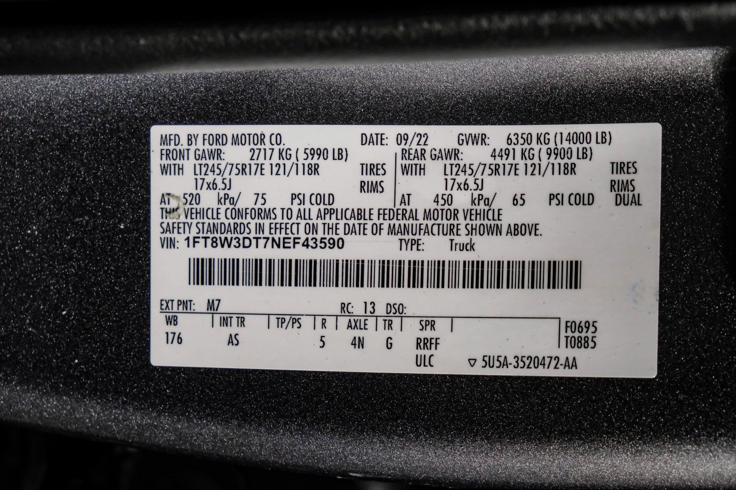 | VIN | 1FT8W3DT7NEF43590 |