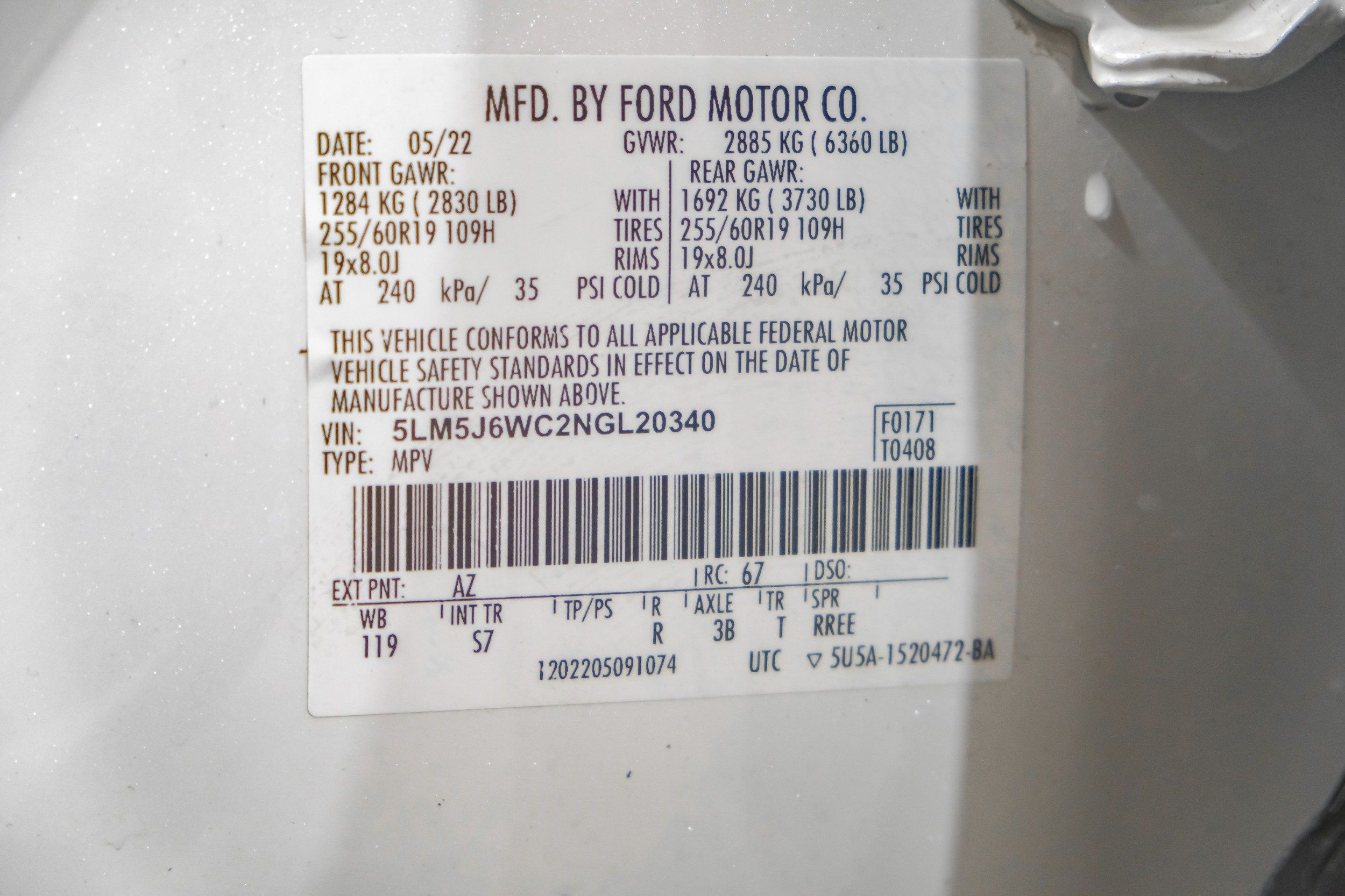 | VIN | 5LM5J6WC2NGL20340 |