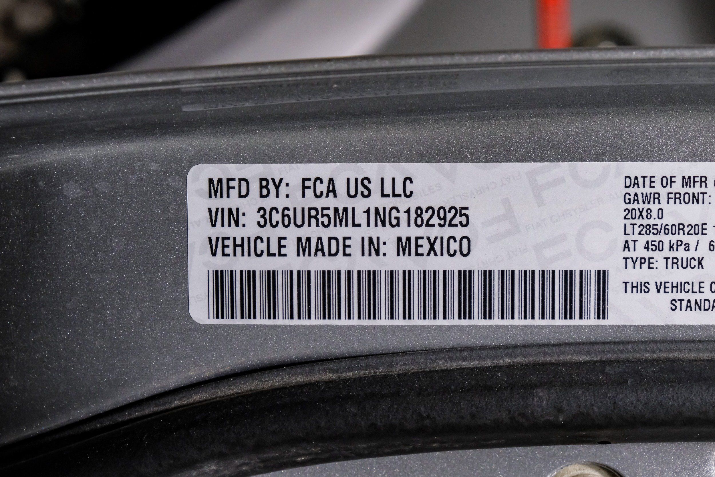 | VIN | 3C6UR5ML1NG182925 |