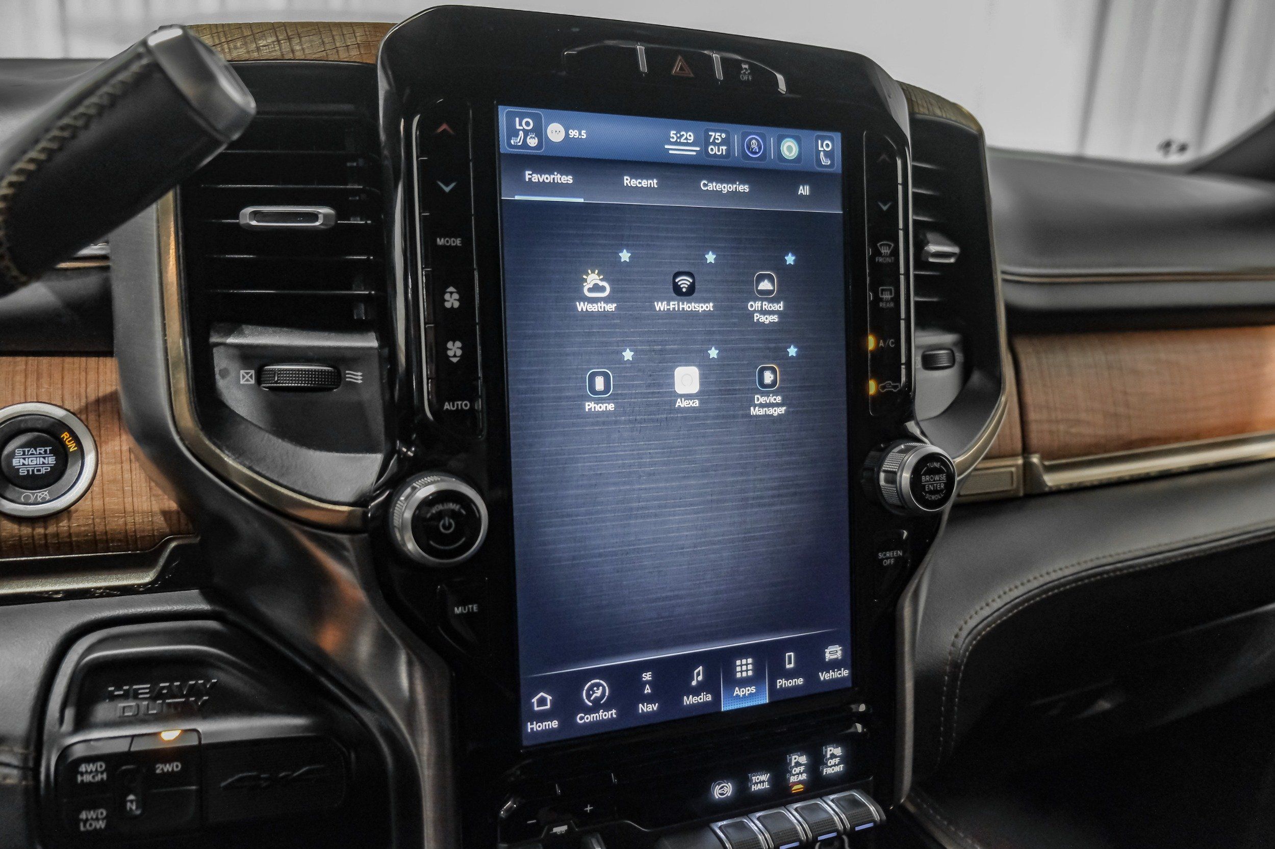 • Steering wheel material: Leather and genuine wood steering wheel