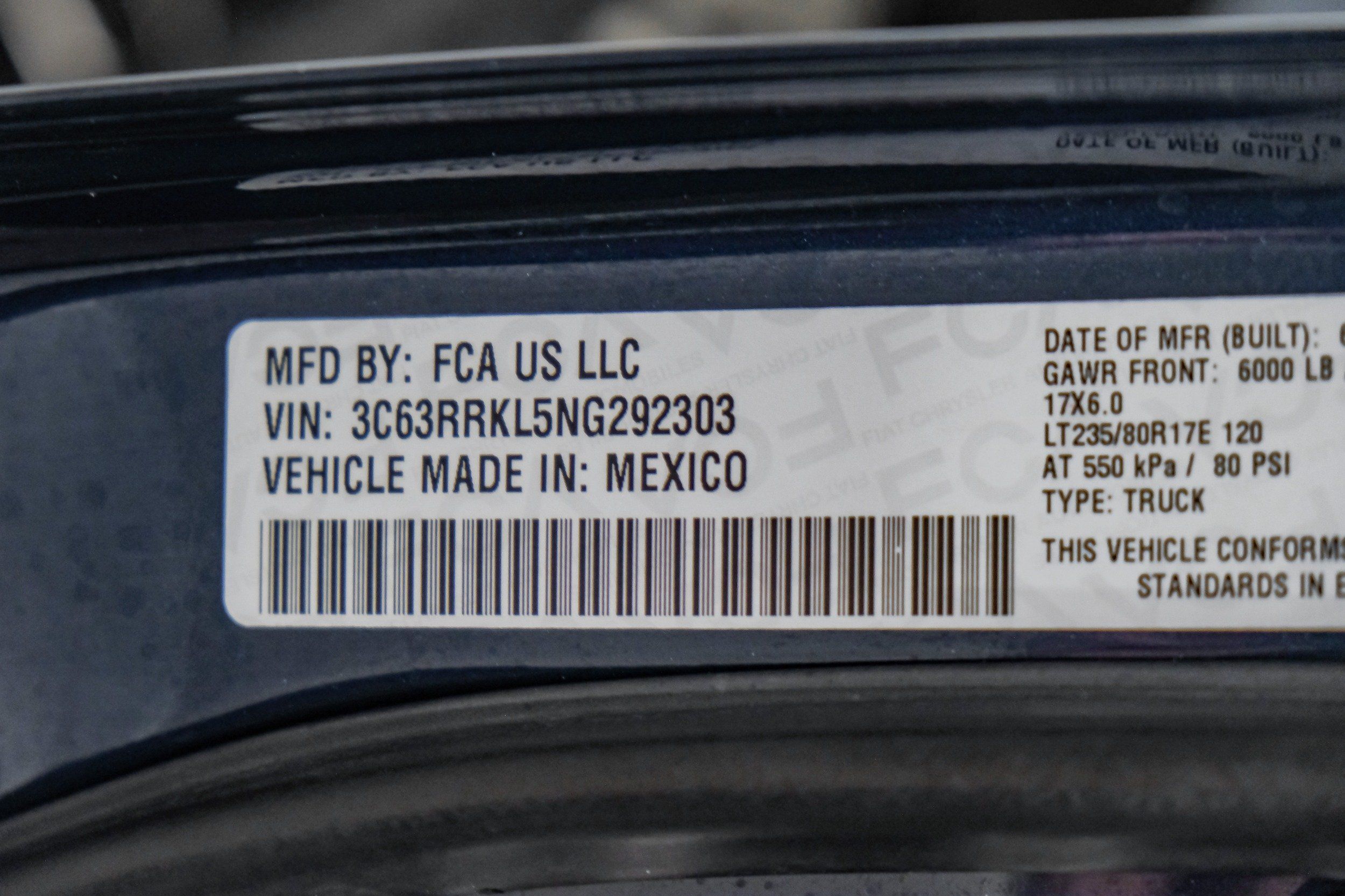 VIN 3C63RRKL5NG292303