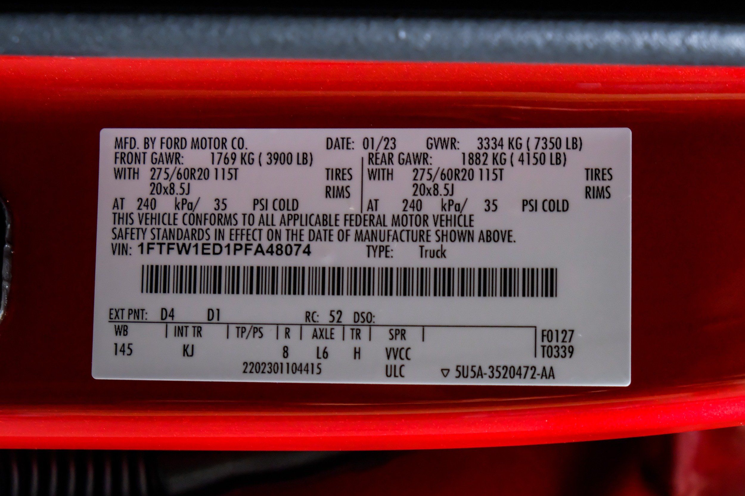 VIN 1FTFW1ED1PFA48074