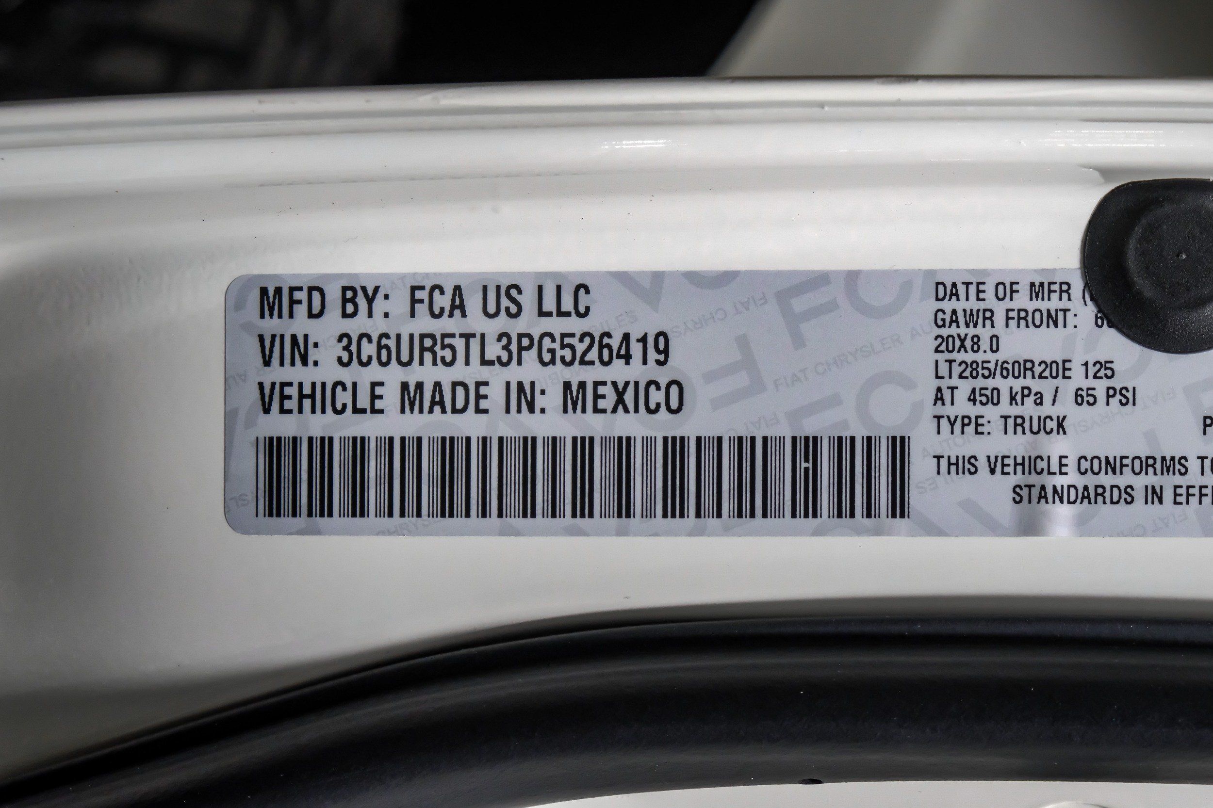 VIN | 3C6UR5TL3PG526419 |