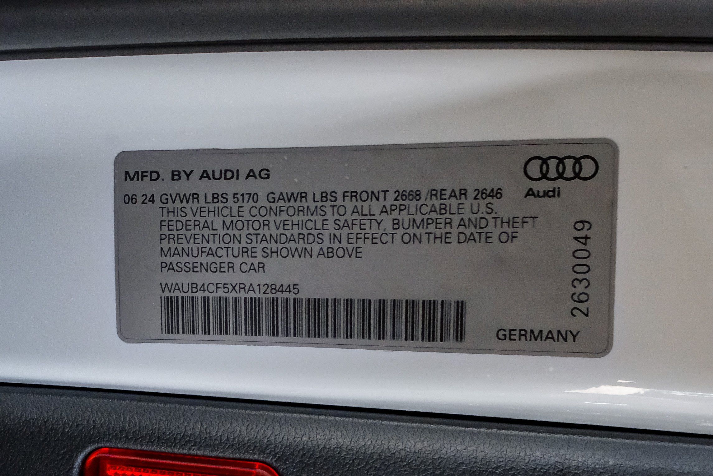 | VIN | WAUB4CF5XRA128445 |