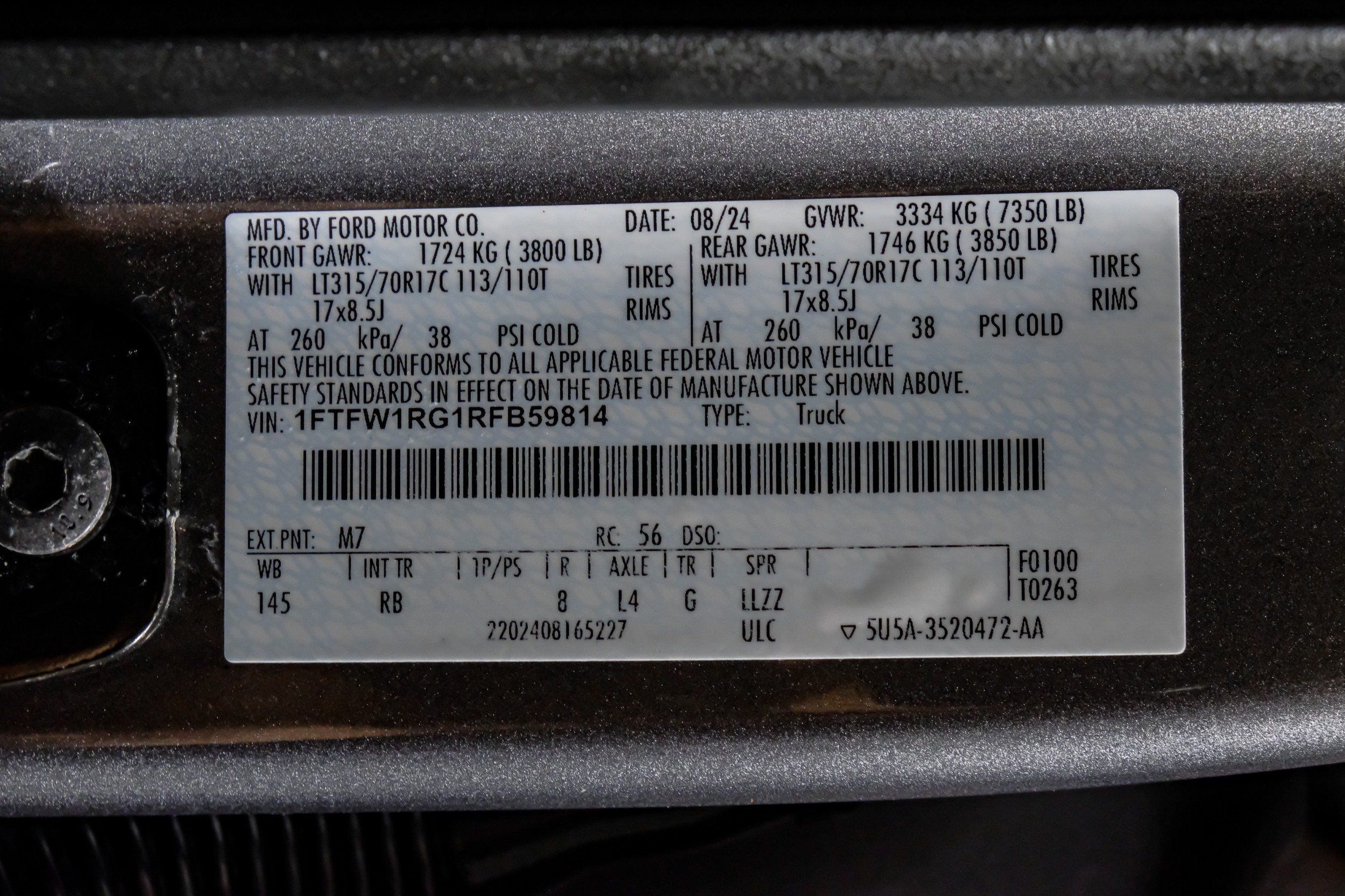 VIN | 1FTFW1RG1RFB59814 |