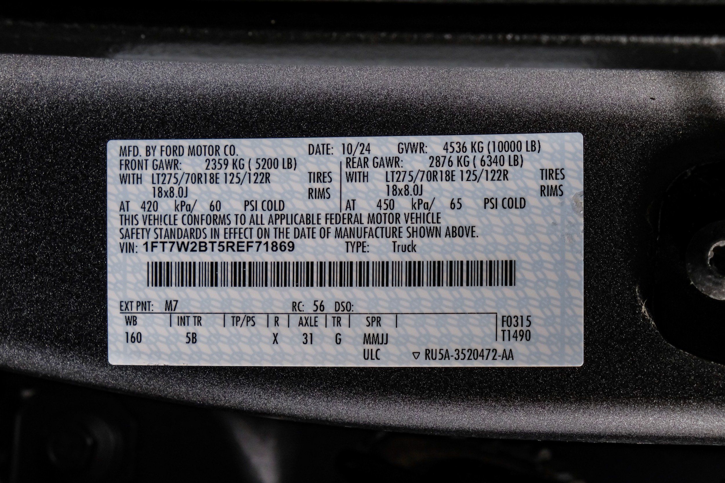 | VIN | 1FT7W2BT5REF71869 |