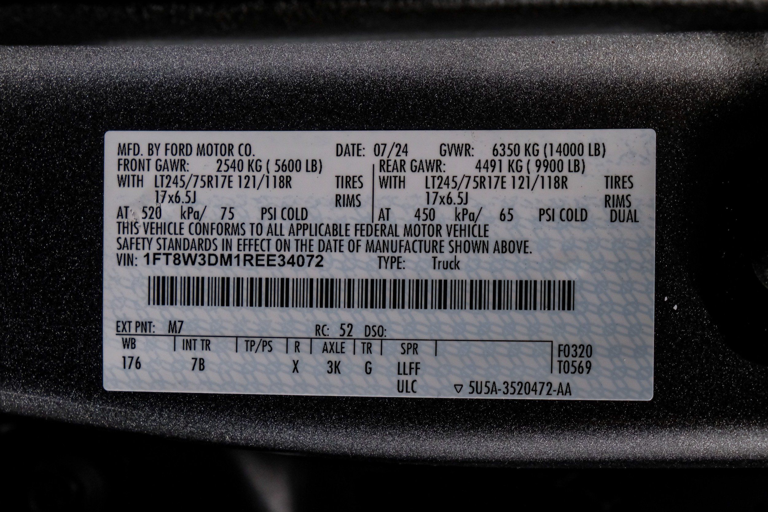 | VIN | 1FT8W3DM1REE34072 |