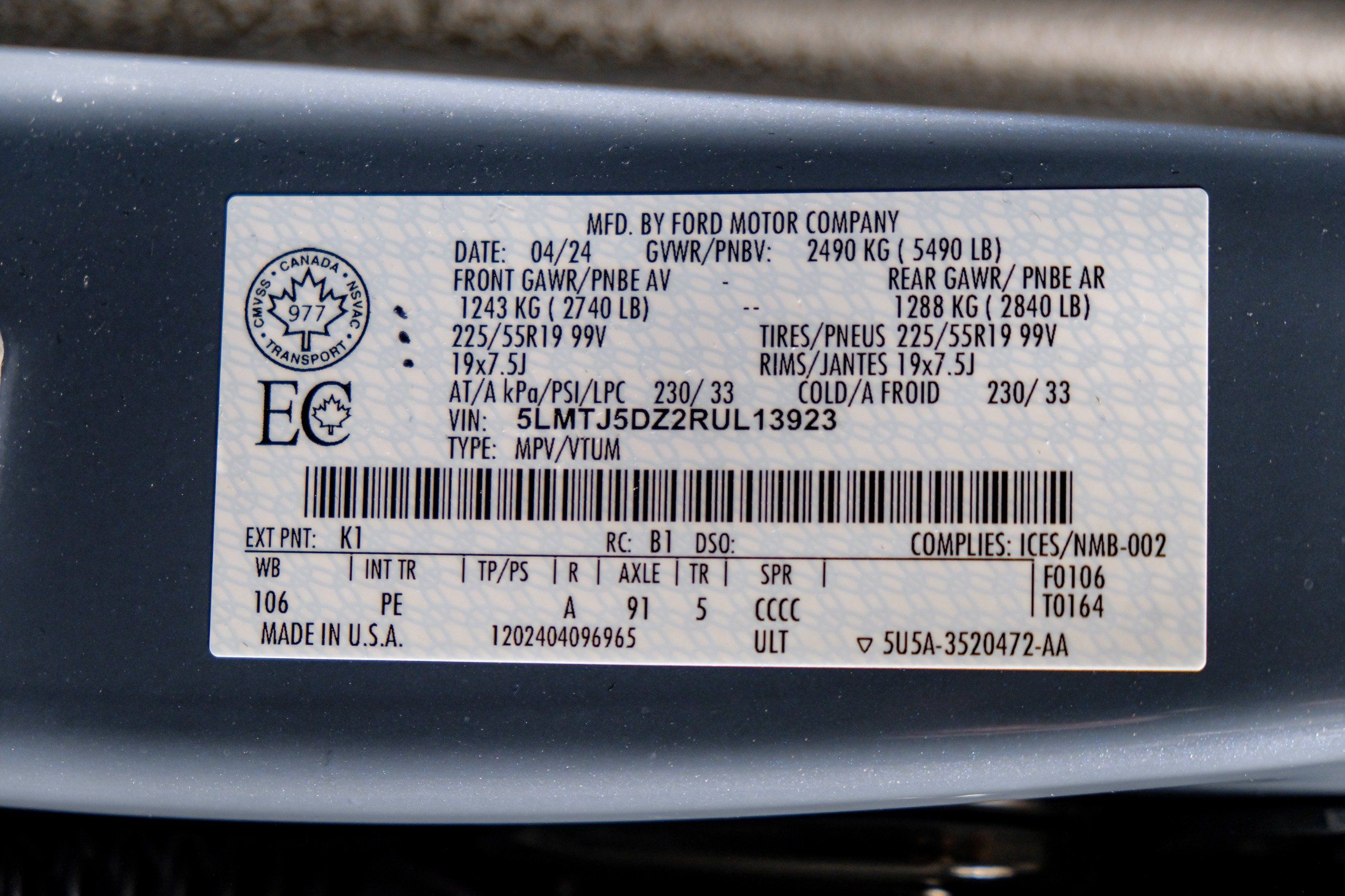 | VIN | 5LMTJ5DZ2RUL13923 |
