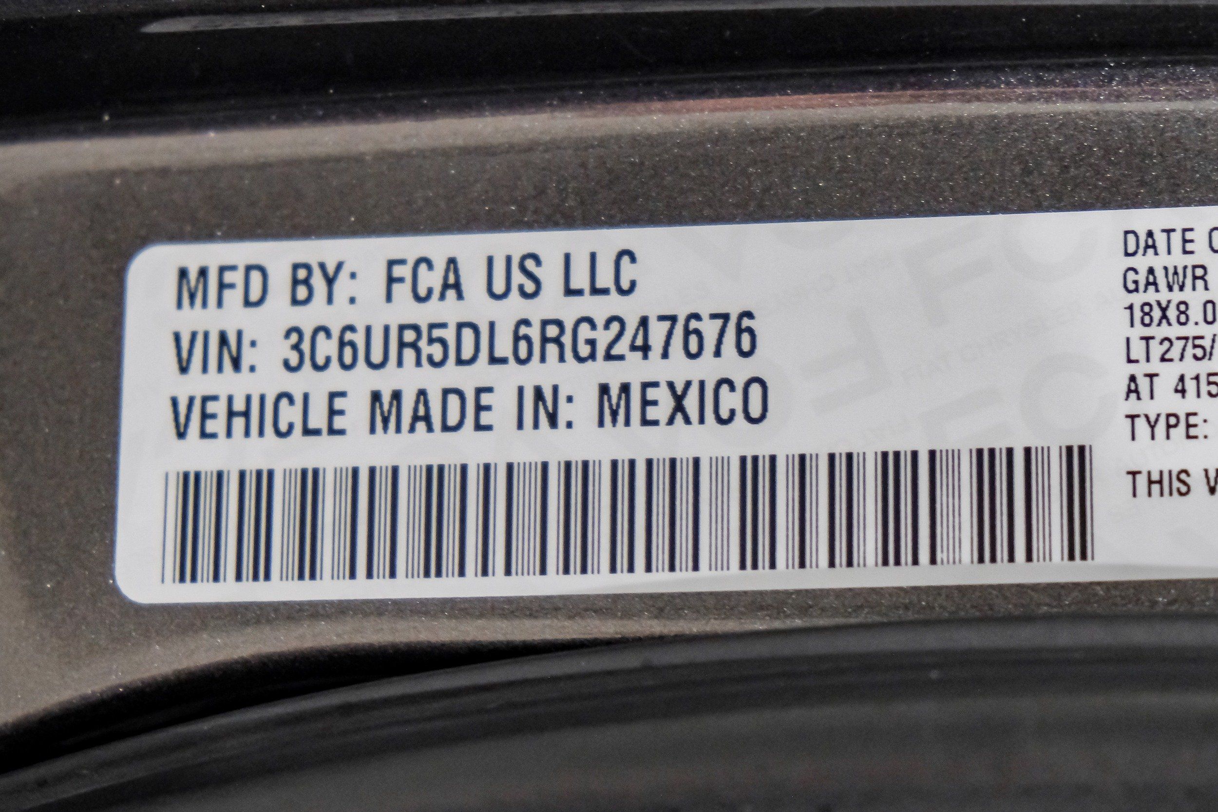 | VIN | 3C6UR5DL6RG247676 |