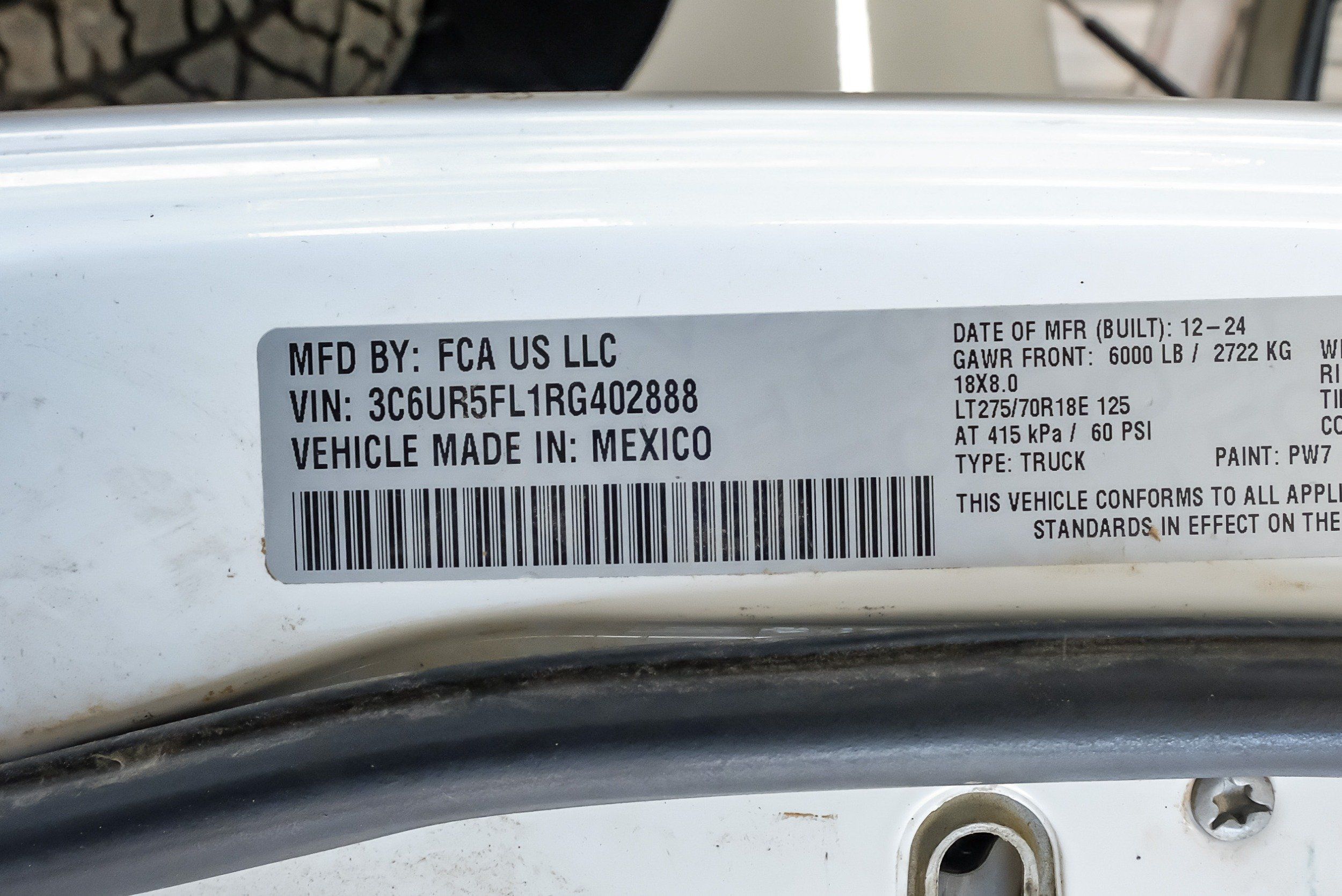 | VIN | 3C6UR5FL1RG402888 |