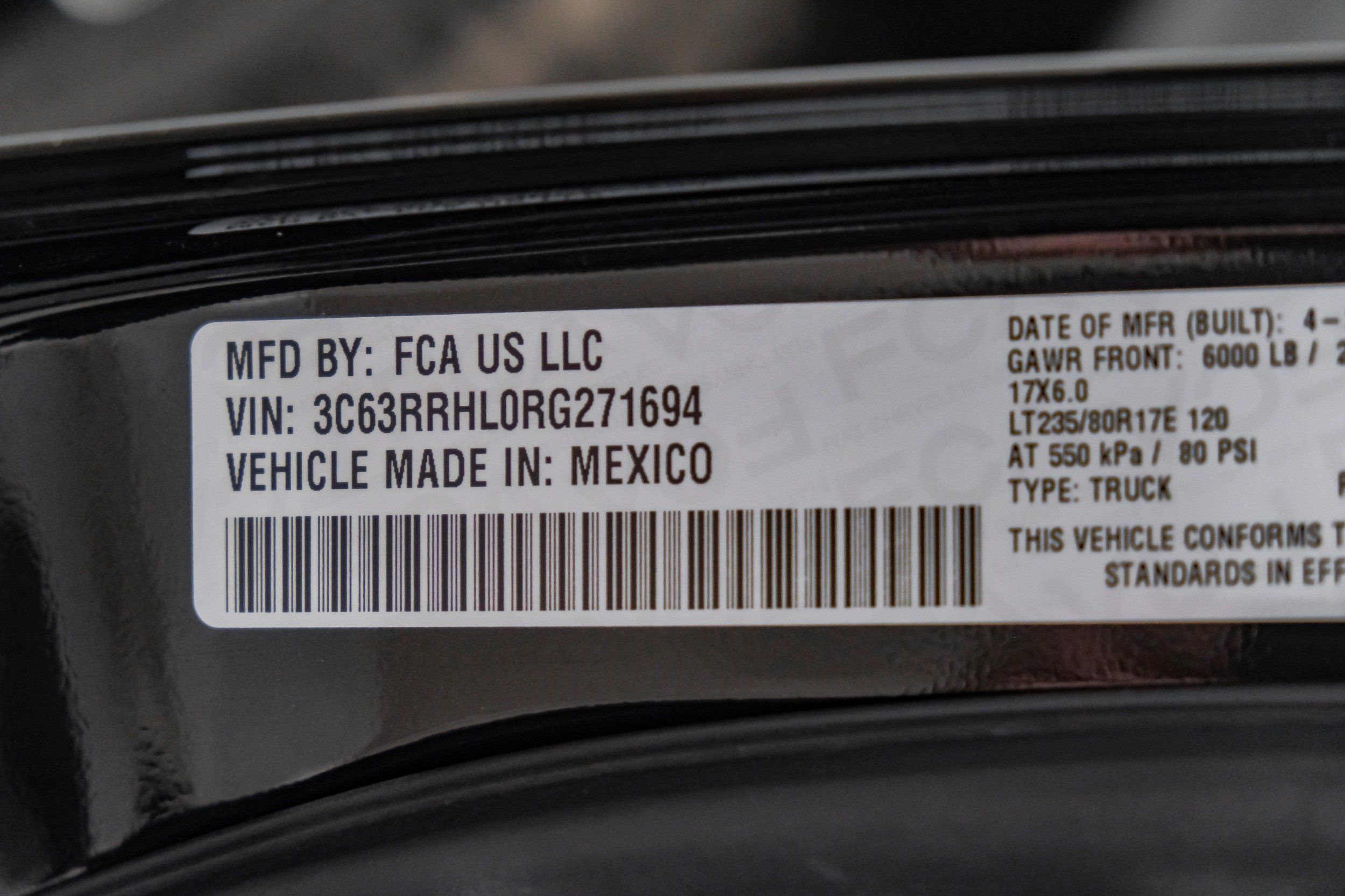 | VIN | 3C63RRHL0RG271694 |