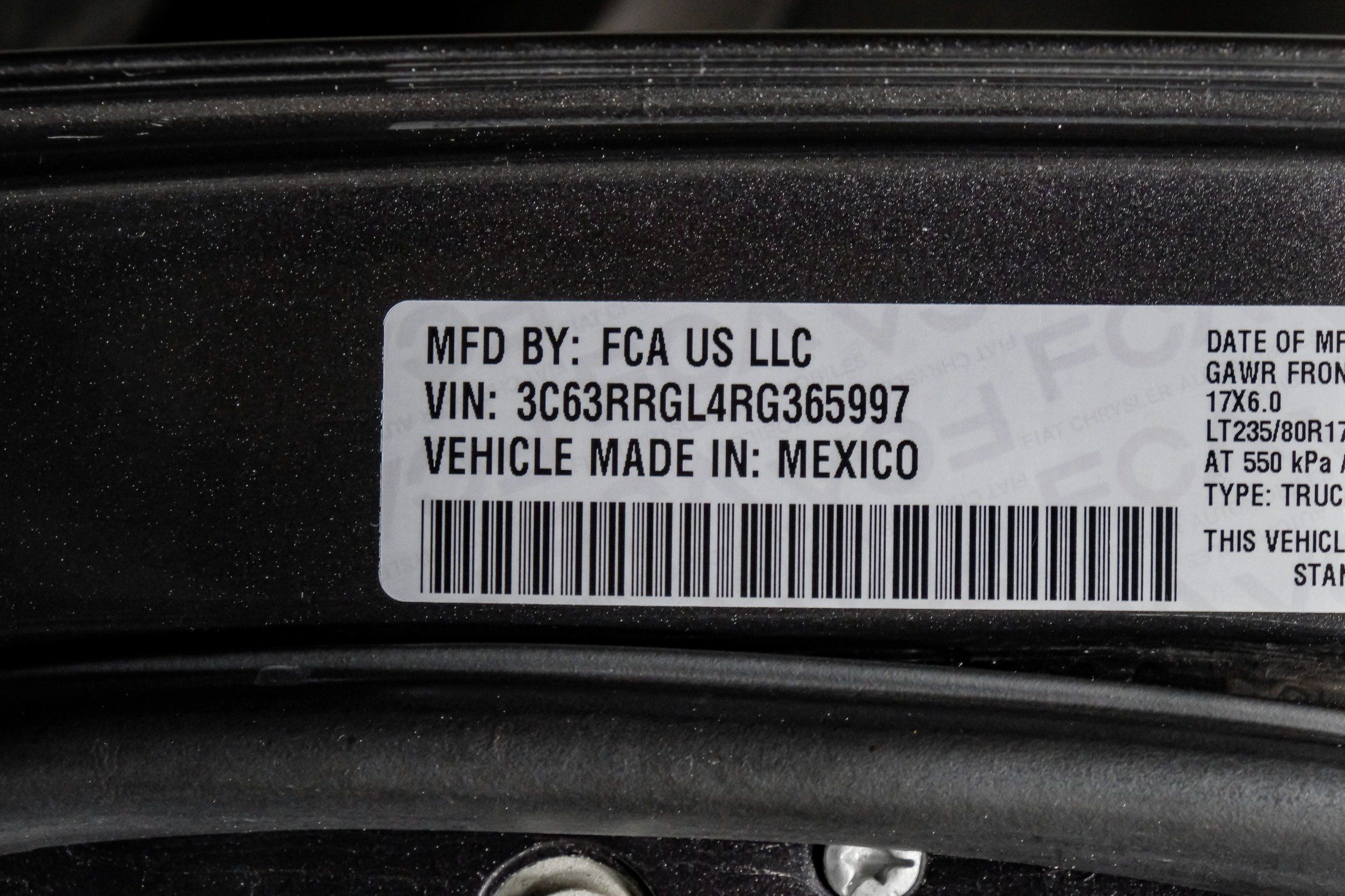 | VIN | 3C63RRGL4RG365997 |