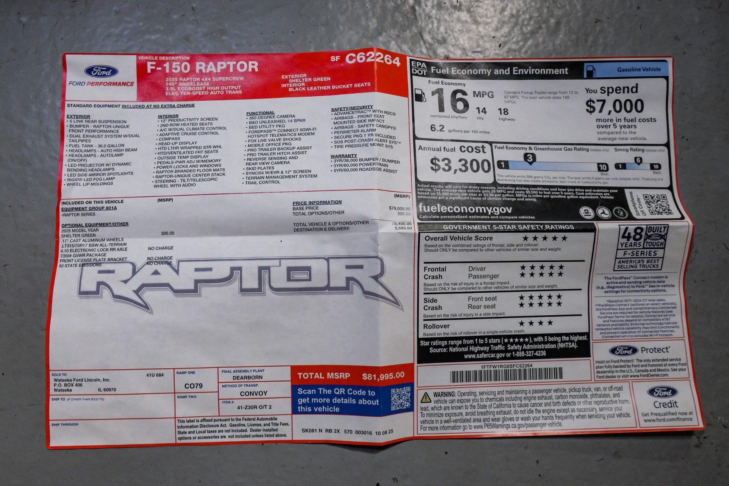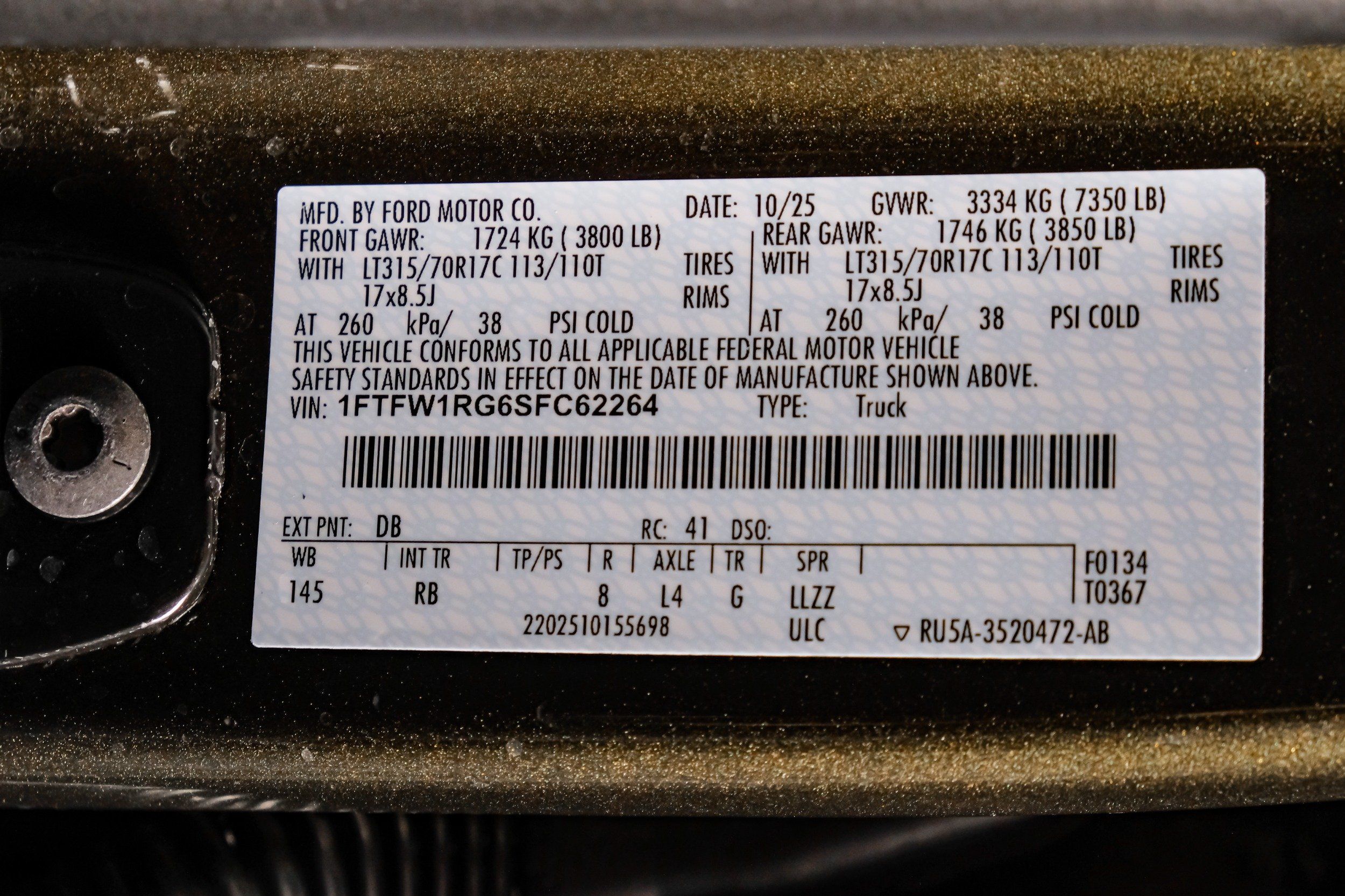 | VIN | 1FTFW1RG6SFC62264 |